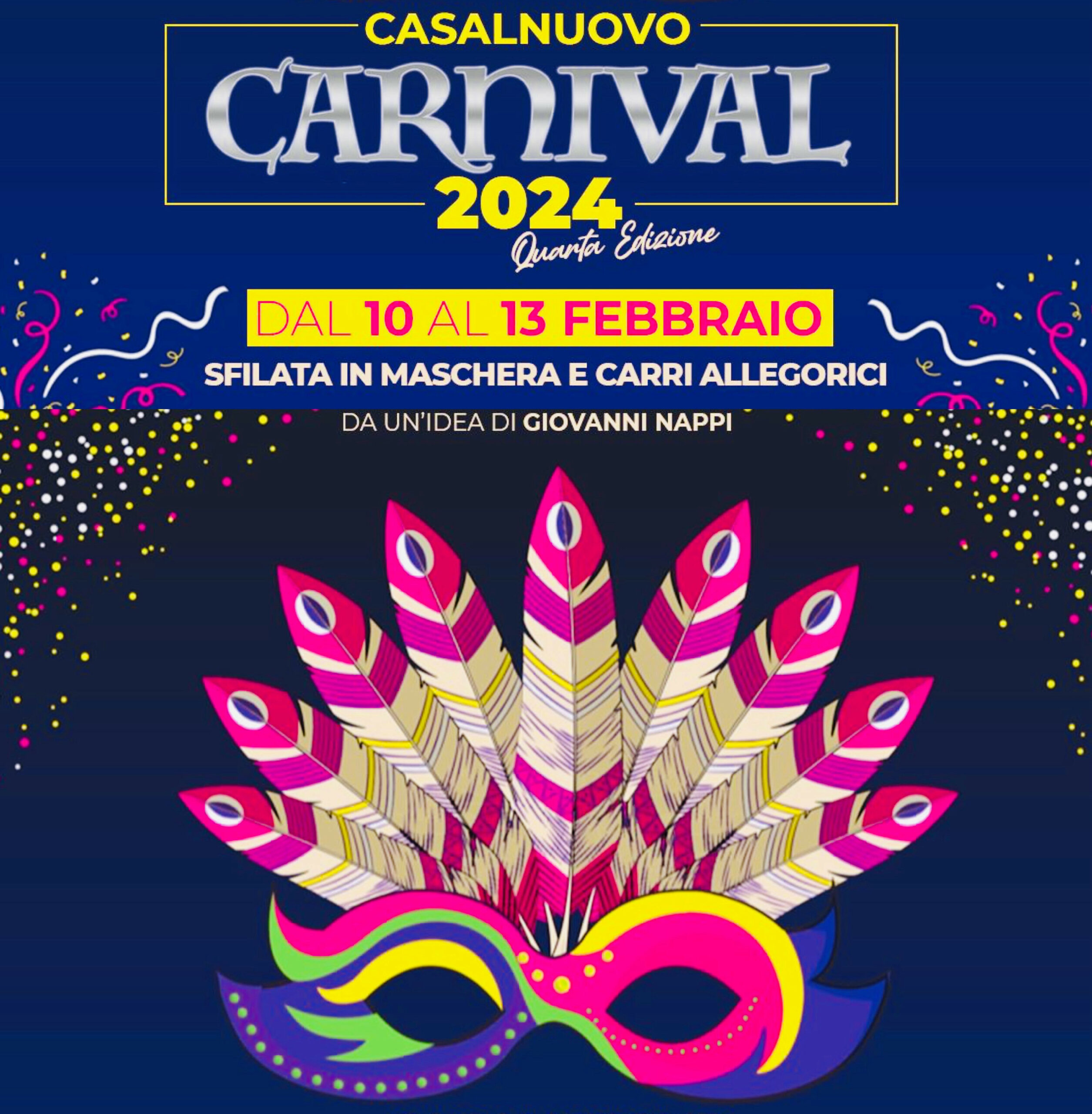 Tutto pronto per la quarta edizione del “Carnival in Casalnuovo”, l’iniziativa carnevalesca della Città di Casalnuovo, con carri allegorici e sfilata in maschera che si svolgerà dal 10 febbraio al 13 febbraio 2024 con l’arrivo a Piazza Municipio alle ore 17.00 del sabato 10 febbraio.