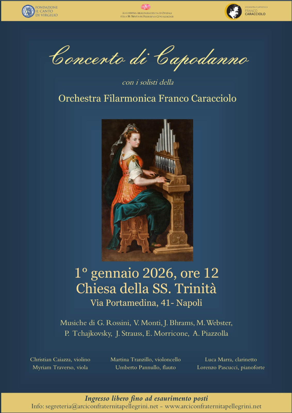 Giovedì 1 Gennaio 2026 alle ore 12 nella Chiesa della Santissima Trinità torna il tradizionale Concerto di Capodanno offerto alla città dall’Arciconfraternita dei Pellegrini.