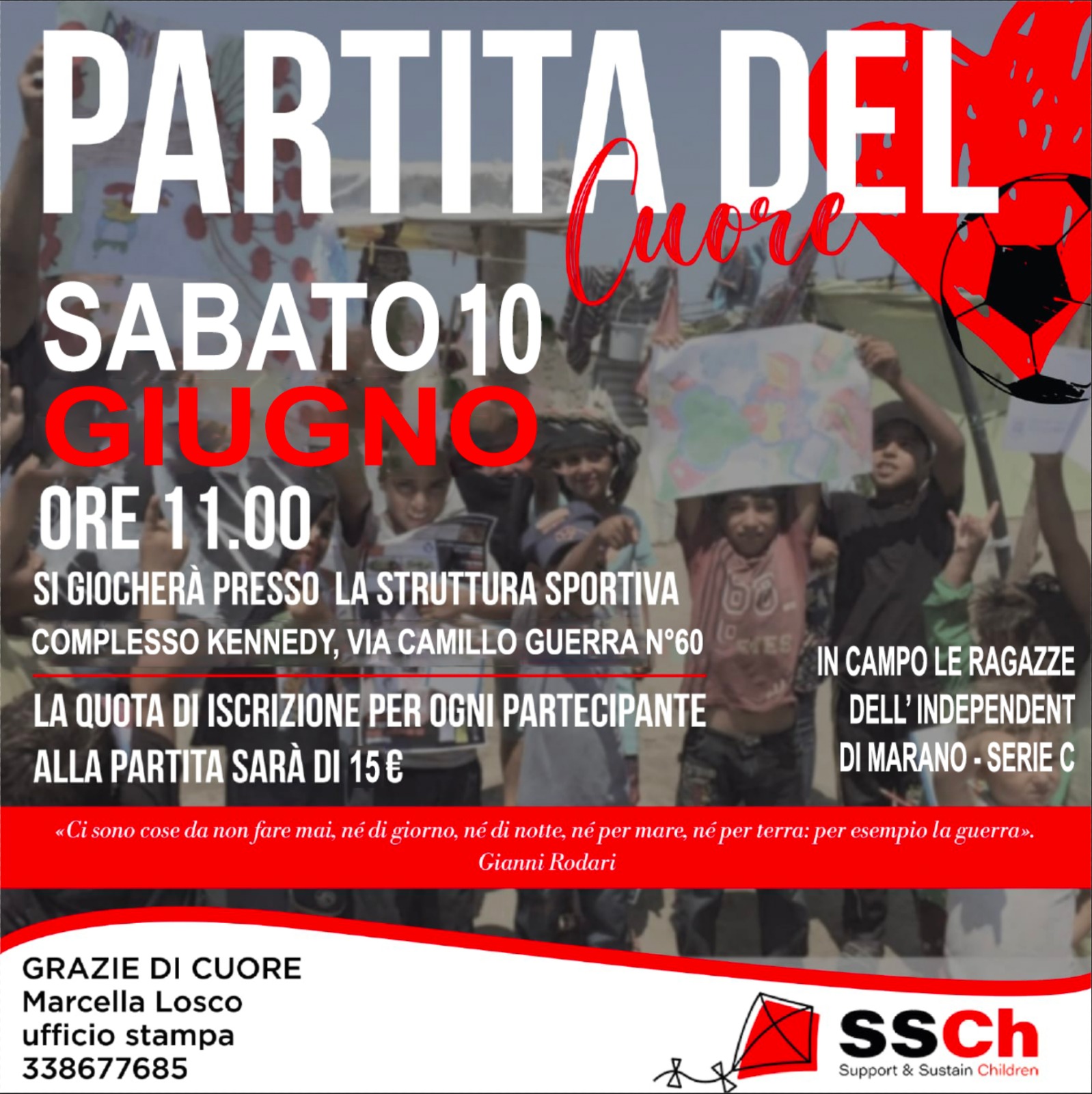 Sabato  10 giugno ore 11 presso la  struttura sportiva Kennedy le ragazze dell’Indipendent calcio Marano Serie C scenderanno in campo per raccogliere fondi per i nostri bambini siriani contro l’Associazione calcio femminile Giugliano Campania. I piu’ piccoli saranno accolti dai sorrisi dei clown, ai piu  grandi, future generazioni di domani, spiegheremo che cosa è un Ong e il nostro lavoro in Siria. I fondi raccolti serviranno per comprare aiuti umanitari  alla popolazione civile in Siria.