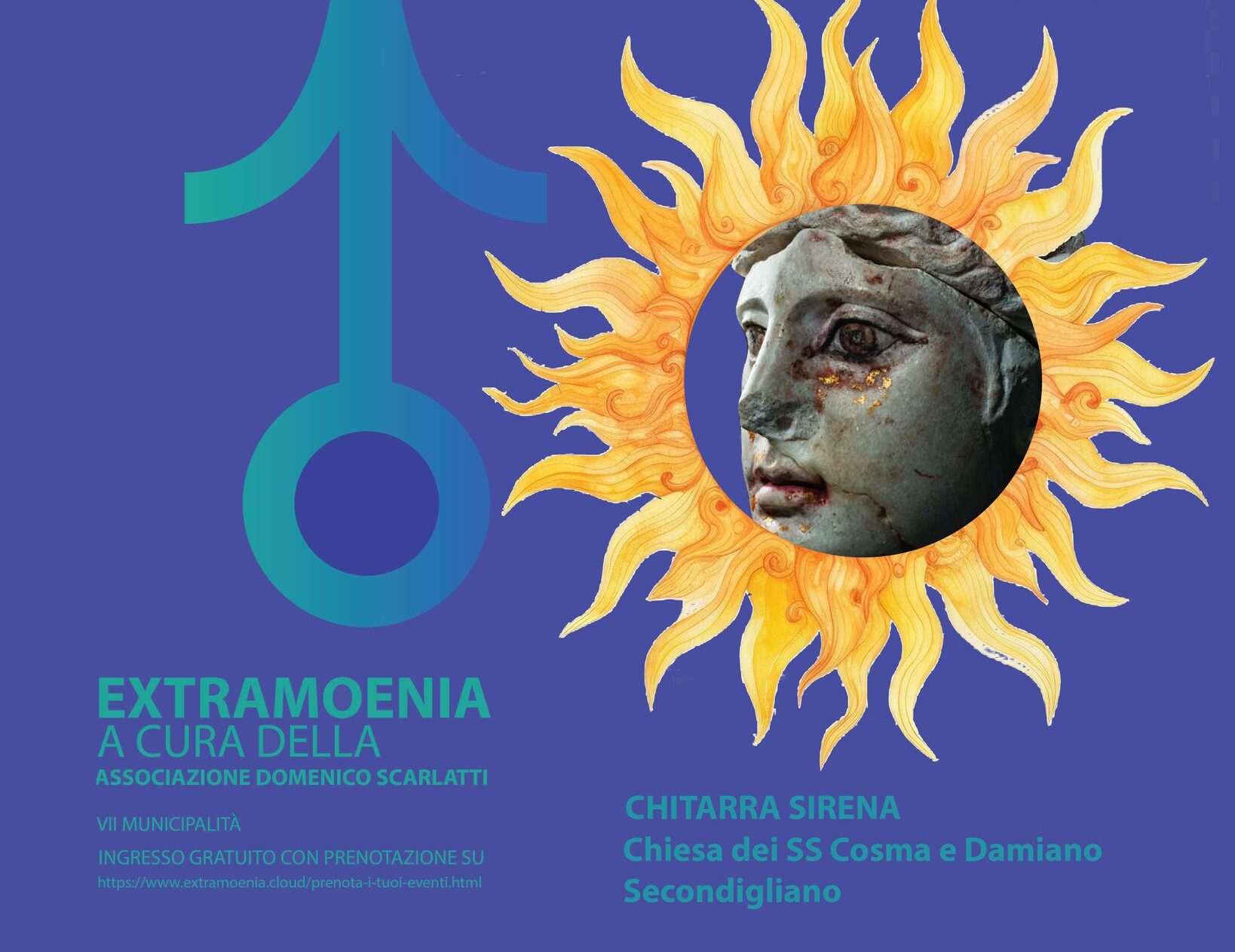 L’apertura vera e propria di Extra Moenia sarà affidata allo spettacolo Chitarra Sirena, la voce antica di Parthenope che si tiene sabato 11 ottobre alle ore 19 nella Chiesa dei SS Cosma e Damiano a Secondigliano (in piazza Luigi di Nocera). Lo spettacolo esplora l’identità musicale della città legata alla figura di Parthenope e alla sua influenza sulla cultura napoletana e vedrà in scena Carolina Aterrano per la danza, Enzo Amato alla chitarra, Emidio Ausiello alle percussioni, Roberto del Gaudio come voce recitante e l’Orchestra da Camera di Napoli. Il Maestro Enzo Amato firma anche la direzione artistica.
