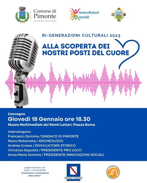 Giovedรฌ 18 gennaio alle ore 18.30 presso il Museo multimediale dei Monti Lattari a Pimonte si terrร la presentazione del progetto “๐ฅ๐ถ-๐ด๐ฒ๐ป๐ฒ๐ฟ๐ฎ๐๐ถ๐ผ๐ป๐ถ ๐ฐ๐๐น๐๐๐ฟ๐ฎ๐น๐ถ: ๐ฎ๐น๐น๐ฎ ๐๐ฐ๐ผ๐ฝ๐ฒ๐ฟ๐๐ฎ ๐ฑ๐ฒ๐ถ ๐ป๐ผ๐๐๐ฟ๐ถ ๐ฝ๐ผ๐๐๐ถ ๐ฑ๐ฒ๐น ๐ฐ๐๐ผ๐ฟ๐ฒ”, promosso dall’associazione Associazione InnovAzioni Sociali ODV in collaborazione con il Comune di Pimonte e Pro Loco Pimonte.
