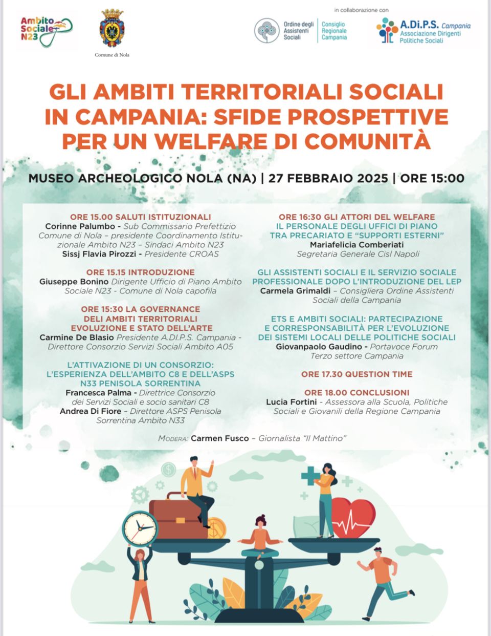 “Gli ambiti territoriali sociali in Campania: sfide e prospettive per un welfare di comunità”: se ne parlerà nel corso di un convegno in programma per le 15,00 di giovedì 27 febbraio 2025 nella sala convegni del museo storico archeologico di Nola. Un pomeriggio di riflessione promosso dall’Ambito Sociale N23 con Nola Comune capofila, dall’Ordine degli Assistenti Sociali della Campania e da A.Di.P.S. Campania, associazione dei dirigenti alle politiche sociali.