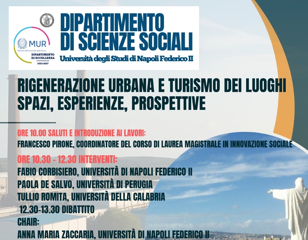 «Rigenerazione urbana e turismo dei luoghi: spazi, esperienze, prospettive» è questo il titolo dell’incontro che che si terrà il 20 maggio, dalle 10, al Polo universitario di San Giovanni a Teduccio, Edificio A3 (ingresso via Nuova Villa).