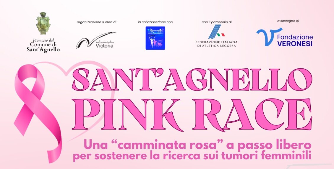 Dopo il successo della prima edizione, sabato 25 ottobre torna la Sant’Agnello Pink Race, la camminata solidale che colora di rosa le strade cittadine. L’appuntamento è in piazza Matteotti dalle 9 del mattino, per un evento che unisce sport, prevenzione e solidarietà a sostegno della Fondazione Umberto Veronesi, impegnata da oltre vent’anni nella ricerca sui tumori femminili.