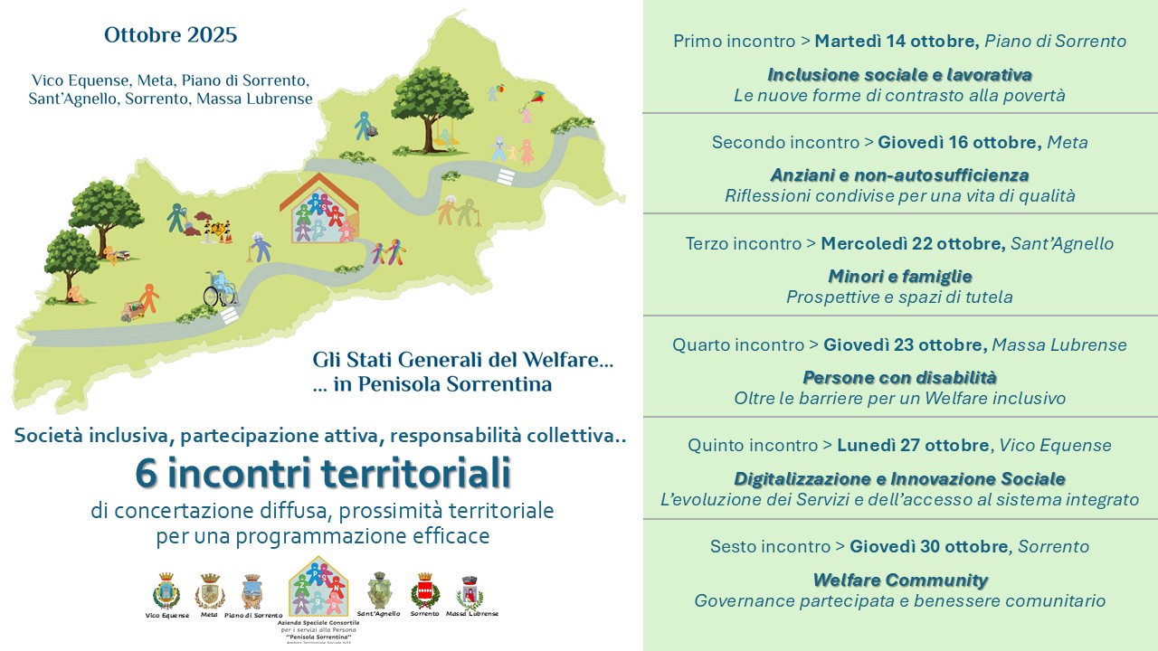 Prende il via l’atteso percorso degli Stati Generali del Welfare in Penisola Sorrentina, un’iniziativa promossa dall’ASPS (Azienda Speciale Penisola Sorrentina) per dare il via a una fase di programmazione sociale condivisa e partecipata che coinvolgerà l’intero Ambito Territoriale Sociale N33.