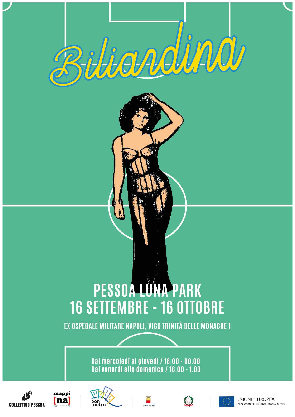 Questa tappa napoletana del Pessoa Luna Park prevede diverse collaborazioni importanti, tra tutte spicca quella con Roxy In The Box, che ha firmato le grafiche della campagna pubblicitaria realizzata insieme con il Collettivo Pessoa ed è artefice di due installazioni artistiche interattive: una inedita, creata site specific per il Luna Park e la ben nota Biliardina Trans ideata con il Pessoa: un gioco di sorellanza e un racconto corale che porta in campo i racconti di 22 donne che giocano a pallone per la prima volta, fianco a fianco.