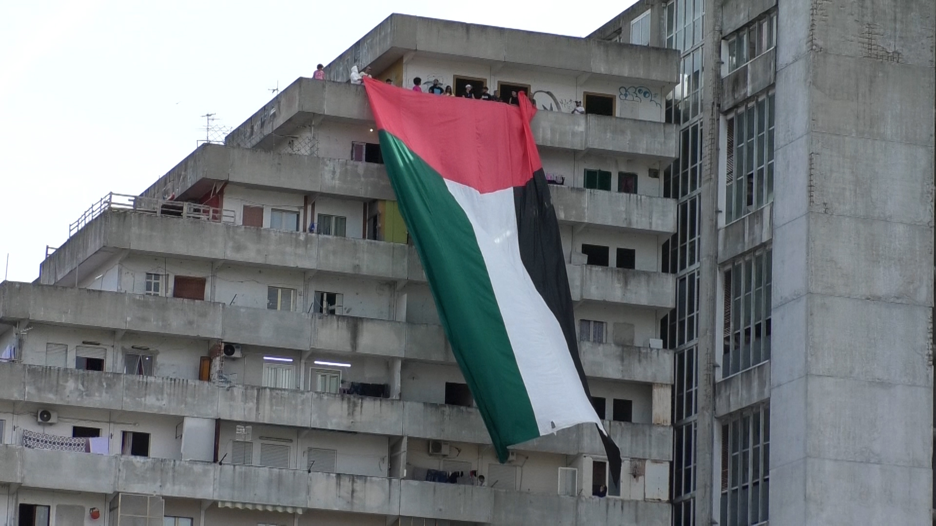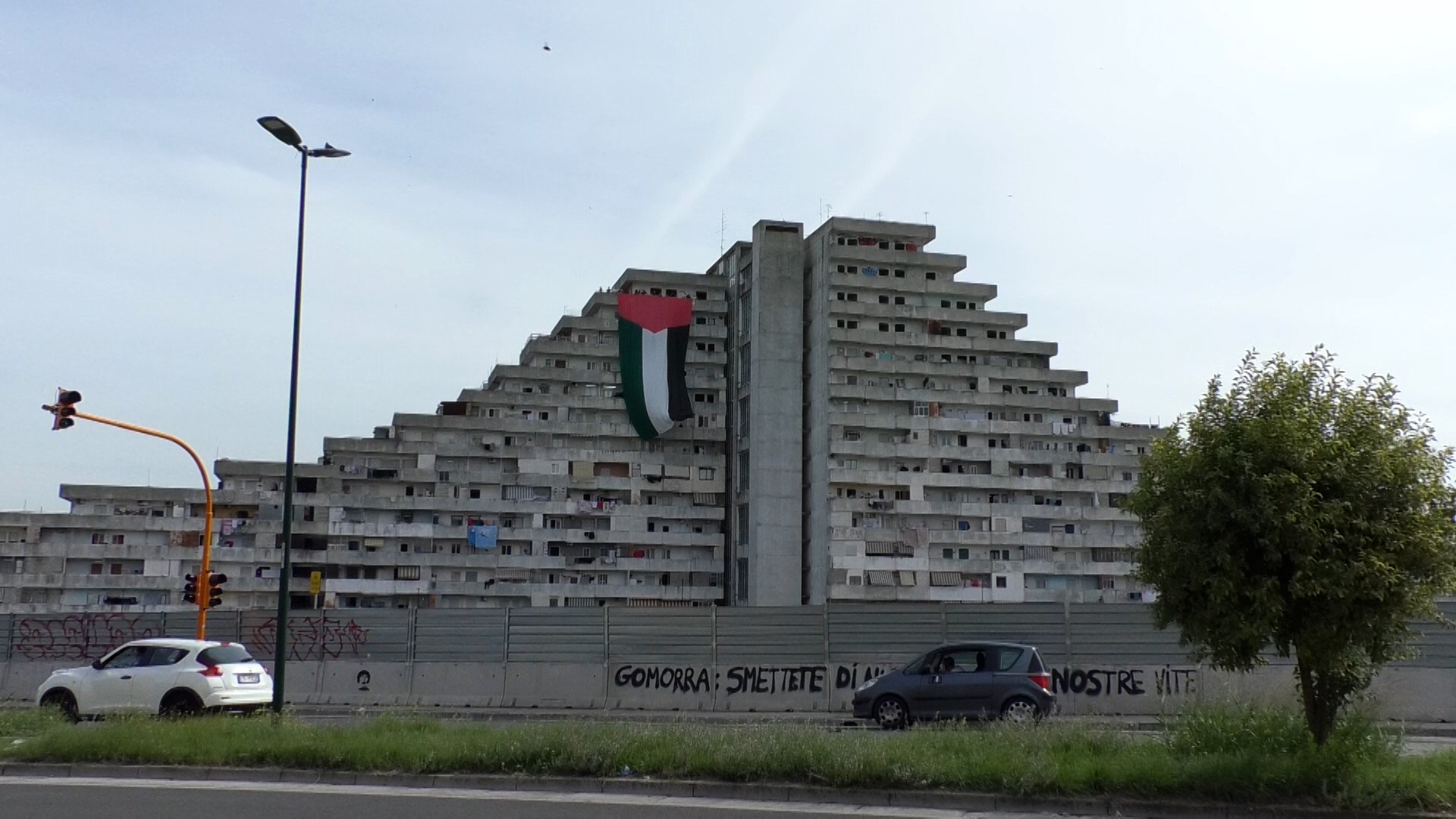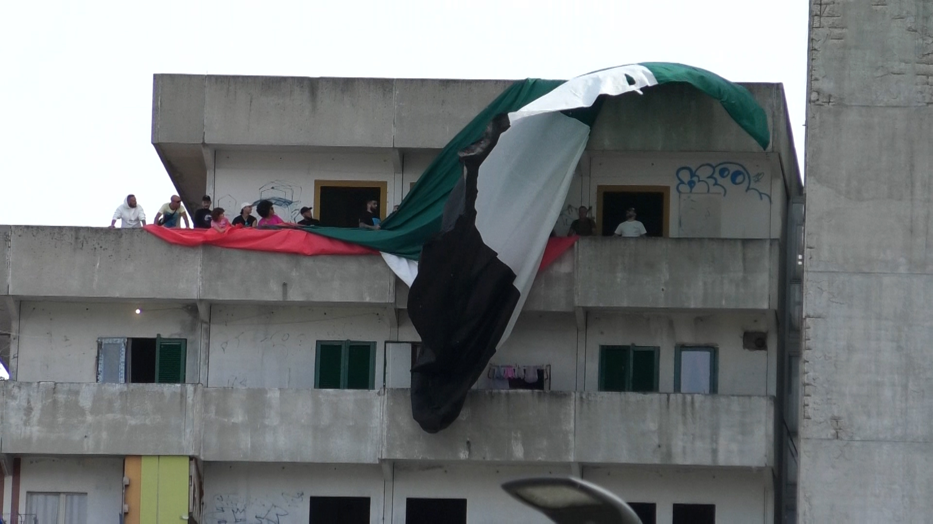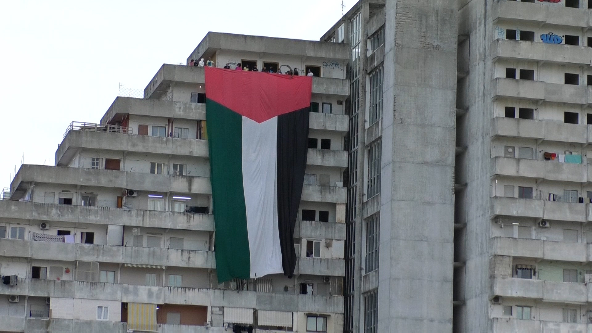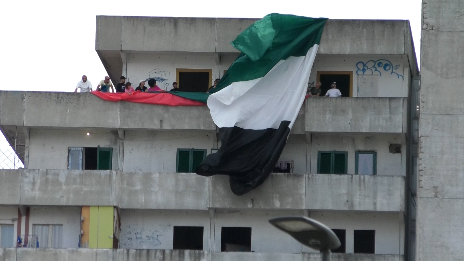 Bandiera Palestinese sventola sulle vele di Scampia