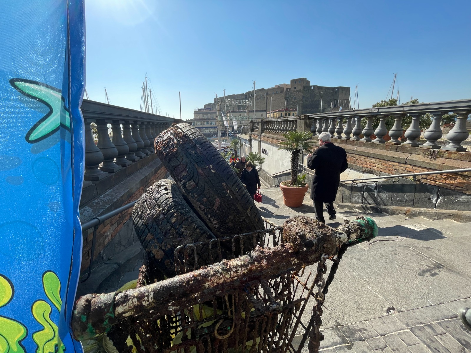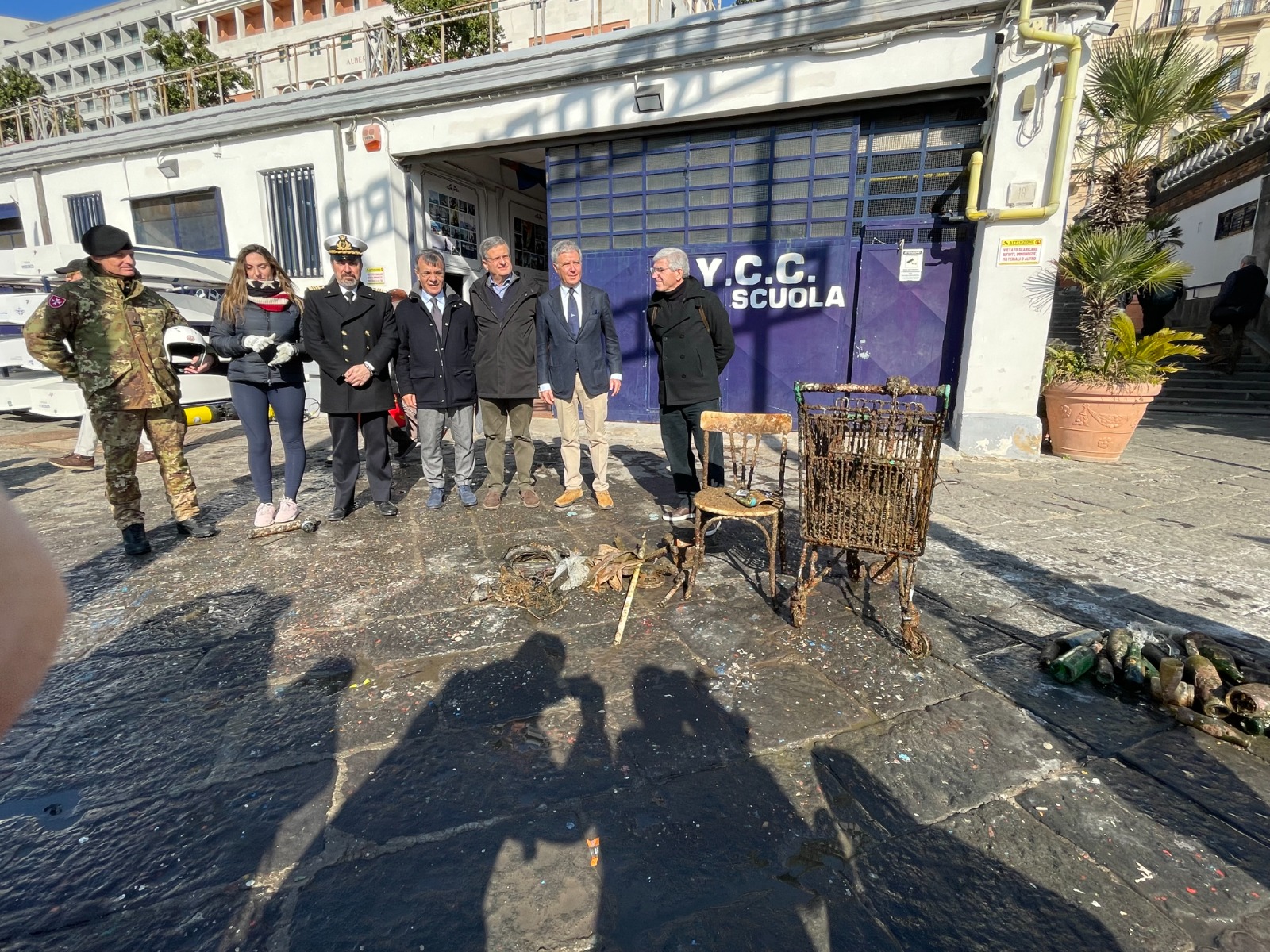 I ragazzi dell’Area Penale di Napoli, accompagnati dai palombari della Marina Militare e dagli istruttori di Mare Nostrum, hanno pulito i fondali del Borgo dei Marinari. L’immersione ha avuto inizio dalla banchina del Circolo Savoia e ha riguardato parte dello specchio d’acqua del porticciolo di Santa Lucia; all’operazione hanno preso parte anche il Corpo Militare dell’Ordine di Malta e i volontari di Archeoclub D’Italia. Sui fondali marini sono stati “pescati” un carrello, una sedia, pneumatici, telefoni cellulare, numerosissime bottiglie in vetro. “Siamo felici di aver fatto qualcosa per la comunità – hanno dichiarato i ragazzi dell’Area Penale di Napoli, uscendo dall’acqua -. Ci fa sentire meglio con noi stessi”.