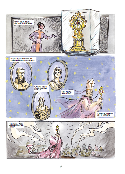 Un nuovo modo per raccontare ed esplorare il ricchissimo immaginario della storia del Santo Patrono, affidando al linguaggio universale dell’illustrazione e del fumetto il compito di trasmettere a un pubblico sempre più ampio e giovane la vita e la conoscenza del culto di San Gennaro, insieme a l’inestimabile patrimonio di arte e cultura che lo lega in maniera imprescindibile alla sua città.