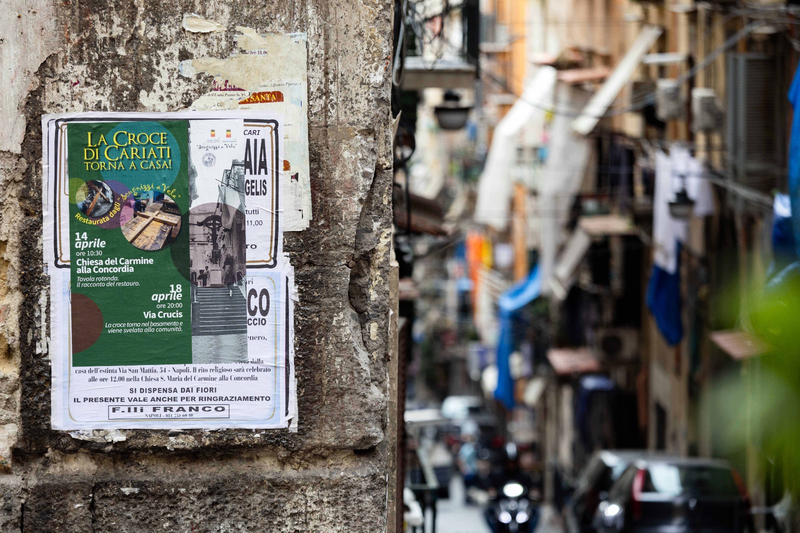 Luigi Carbone, Consigliere Comunale: “La croce di Cariati è la croce dei quartieri spagnoli e quindi del popolo, non potevamo quindi restaurarla con una operazione di palazzo. Quella che ho ideato quindi è una rete di cura più che di mero restauro: ci siamo seduti senza gerarchie allo stesso tavolo, l’associazionismo con scugnizzi a vela, la municipalità, la parrocchia , l’imprenditoria. Abbiamo tirato su la croce dal basso per ridare un messaggio di speranza a questo quartiere e questa città proprio durante la Settimana Santa. C’è bisogno di messaggi positivi e la spiritualità è un vettore importante in questi tempi bui”.