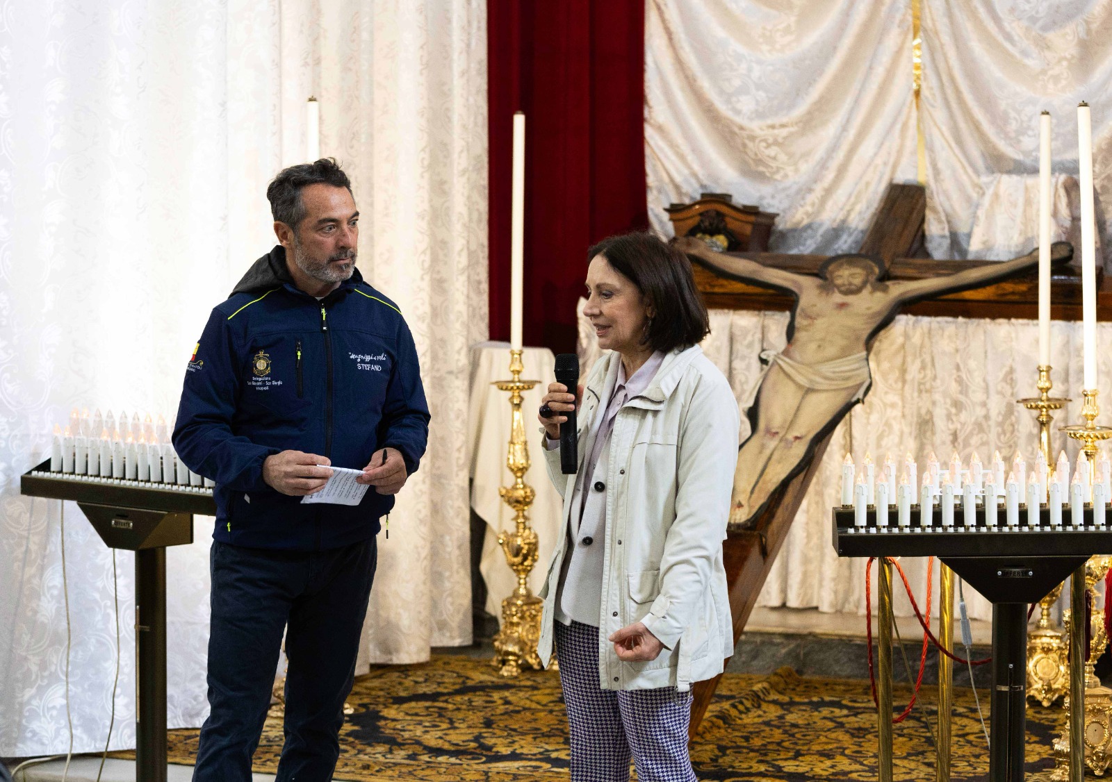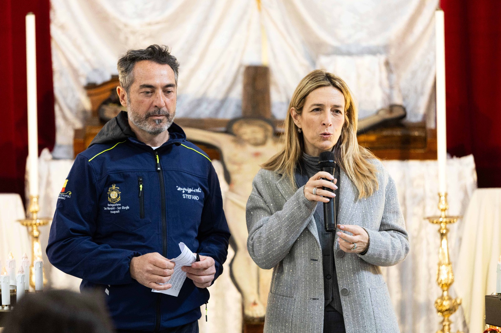 Stefano Lanfranco, presidente Scugnizzi a Vela: “Oggi viviamo la magia del crocifisso che ha messo insieme i giovani in messa alla prova e adulti in misura alternativa che provengono dal carcere, giovanissimi dei Servizi sociali del Comune di Napoli provenienti dai Quartieri, utenti del Dip.to di Salute Mentale ASL NA 1 e ASL NA 2 e volontari Scugnizzi a vela. Cristiani, musulmani, giovani e meno giovani, persone in cerca di un equilibrio interiore, accomunati dai sentimenti di altruismo e amicizia, uniti come un vero equipaggio, per riportare il crocifisso tra la gente. Un “segnale”, manifestato nel crollo avvenuto del 2023, in un periodo di particolare criticità per i giovani nella nostra città”.