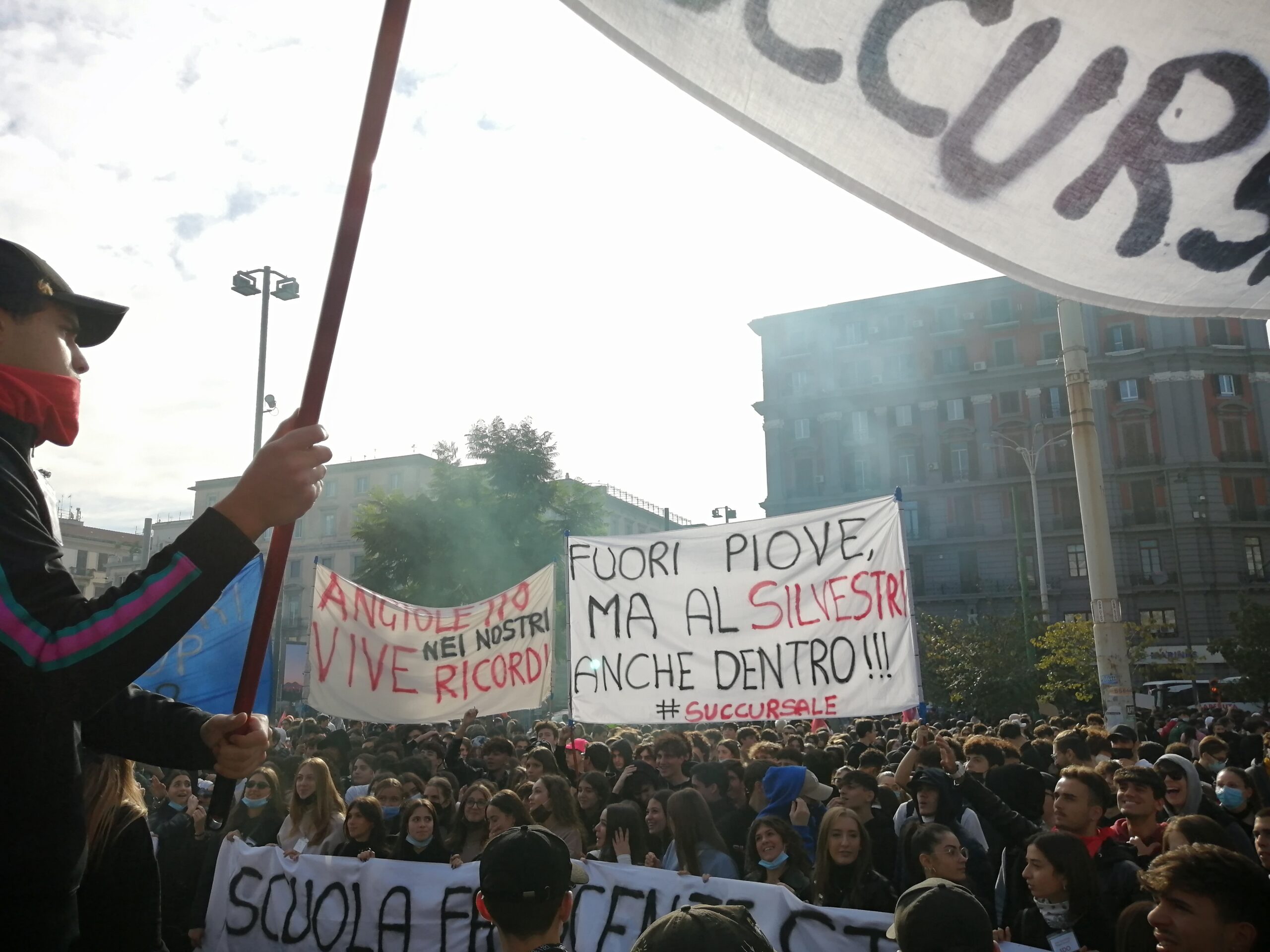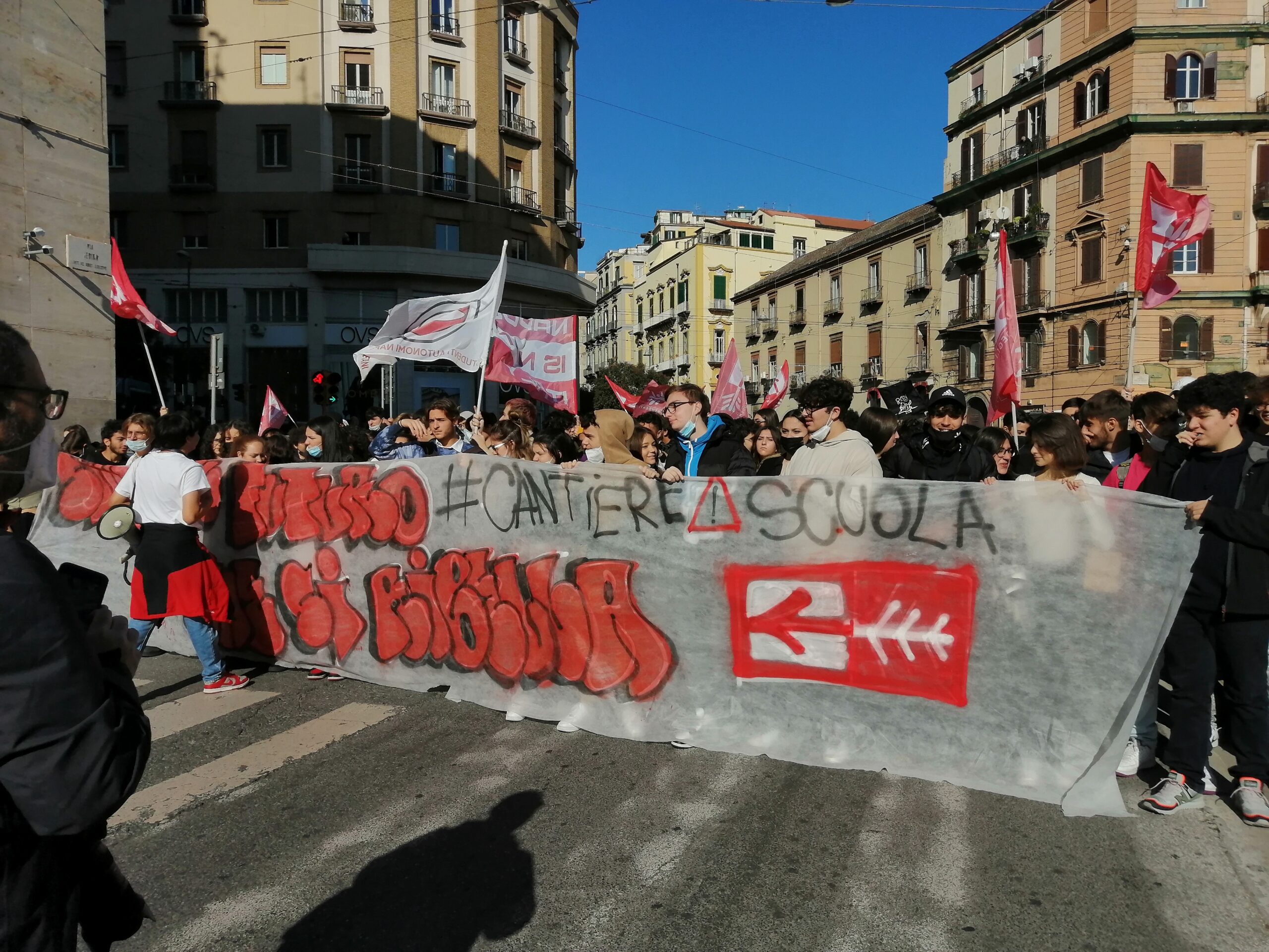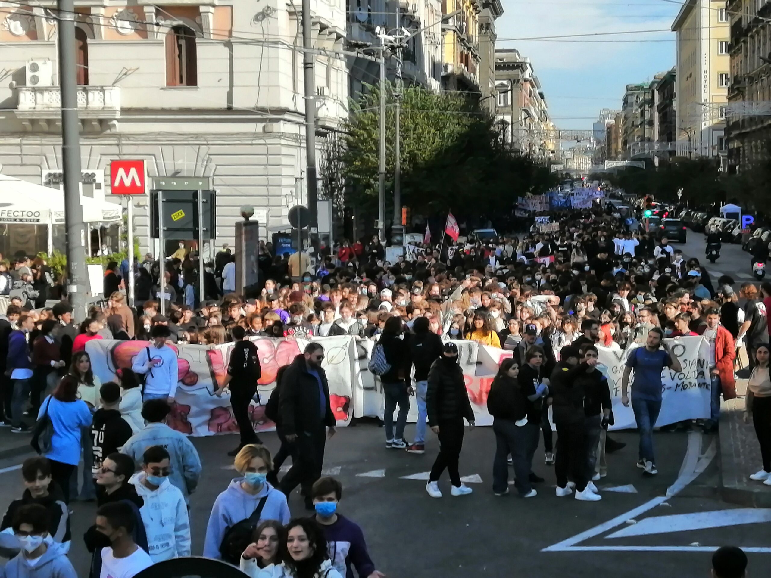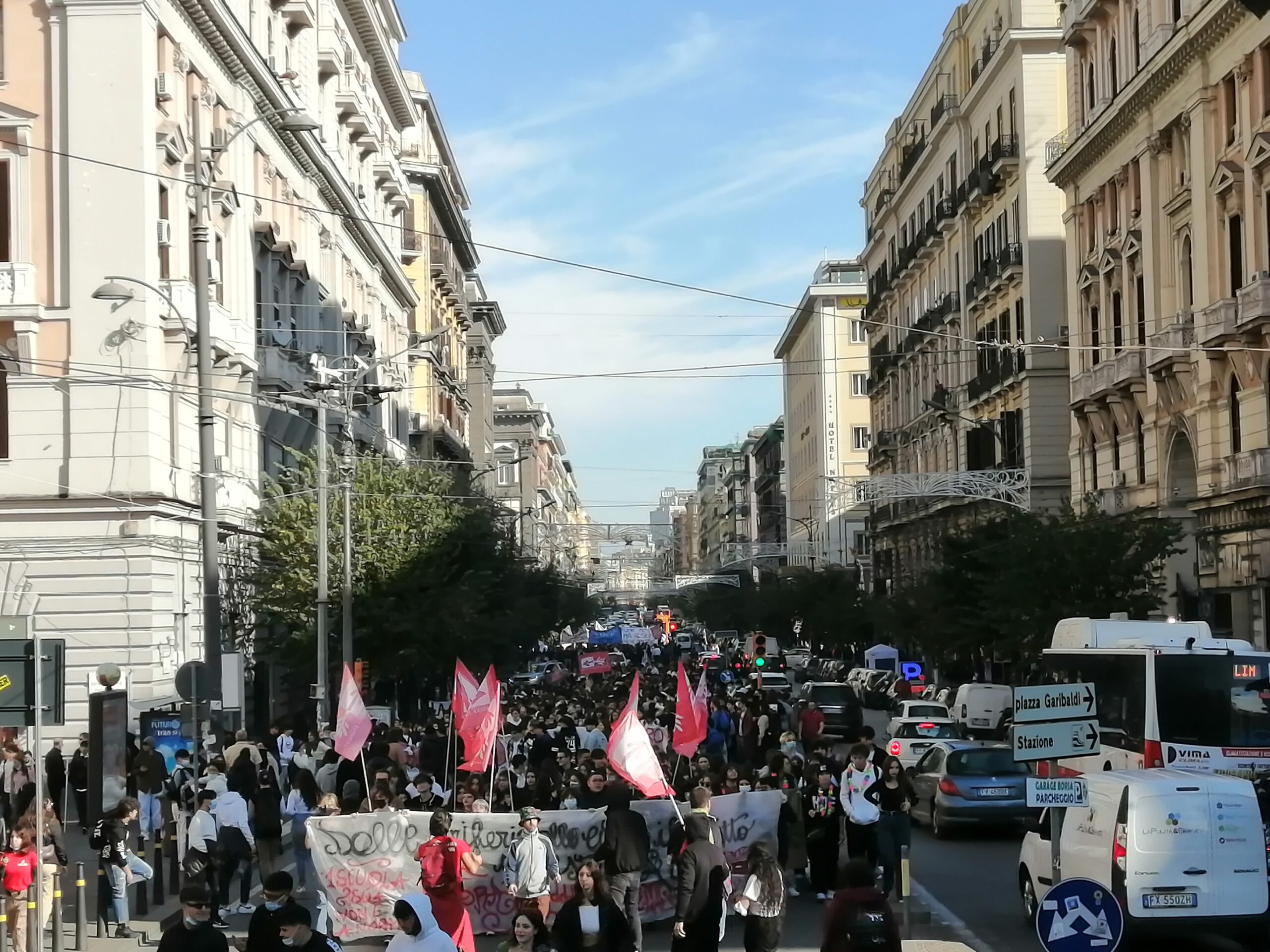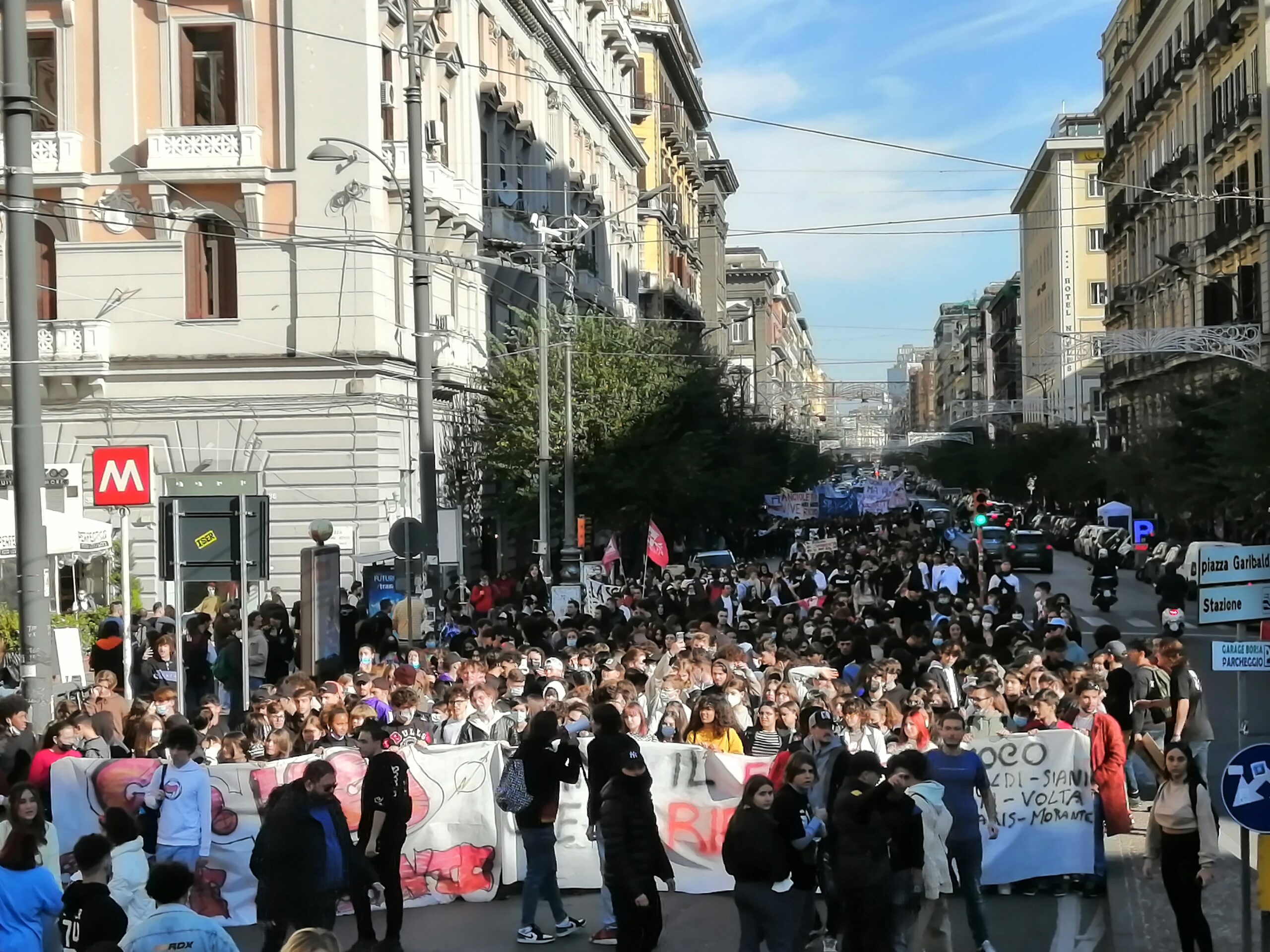 Nessun miglioramento sulla sicurezza nelle scuole sovente pericolanti e sui mezzi pubblici sempre troppo affollati rispetto agli standard che il periodo pandemico imporrebbe. Totale assenza di strumenti volti alla tutela psicologica degli istituti dove la didattica viene definita troppo «nozionistica» anche in una regione, come la Campania, in cui la dispersione scolastica è al 19%. Sono i motivi che hanno spinto stamattina anche gli studenti napoletani e campani delle scuole superiori a scendere in piazza nella giornata della mobilitazione nazionale, la prima dopo un anno e mezzo di pandemia. Il corteo di Napoli, partecipato da diverse migliaia di ragazzi arrivati da diverse zone dell’area metropolitana e frequentanti diverse decine di istituti, ha avuto il punto d’approdo a Palazzo Santa Lucia dopo essere partito da piazza Garibaldi e attraversato le arterie del centro storico. “Siamo il futuro che si ribella’’ lo slogan coniato per l’occasione. A fine giornata, una delegazione di studenti ha incontrato, come richiesto, l’assessore regionale all’Istruzione Lucia Fortini per ribadire i punti oggetto delle rivendicazioni.