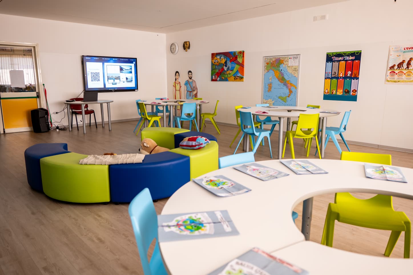 I nuovi ambienti scolastici è stati concepiti per offrire agli studenti spazi moderni e stimolanti, interamente dedicati alla lettura, allo studio e alle attività educative, favorendo lo sviluppo della creatività e della curiosità. Un’attenzione di primissimo piano è stata riservata ai bambini con bisogni educativi speciali (BES), una presenza significativa all’interno dell’Istituto e una realtà che esige ambienti adeguati, sicuri e pienamente inclusivi. Per questo motivo, il fiore all’occhiello del progetto è la Sala Sensoriale Protetta, pensata per favorire il benessere, la concentrazione e l’apprendimento.