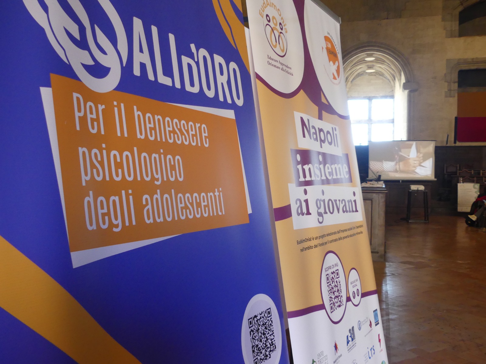 Napoli si schiera al fianco degli adolescenti. Presentate oggi nella Sala dei Baroni del Maschio Angioino due ambiziose sfide per il contrasto del disagio giovanile che per i prossimi quattro anni coinvolgeranno oltre tremila tra ragazze e ragazzi in sei Municipalità della città. Laboratori, incontri con esperti, sportelli informativi e altre iniziative sono promossi da “Ali d’Oro” ed “EudAimOnia! Educare Apprendere Orientare alla Felicità”, progetti selezionati dall’impresa sociale Con i Bambini nell’ambito del Fondo per il contrasto della povertà educativa minorile, grazie alla sinergia tra il terzo settore, le scuole, l’Università, l’Asl Napoli 1 Centro e il Comune di Napoli.