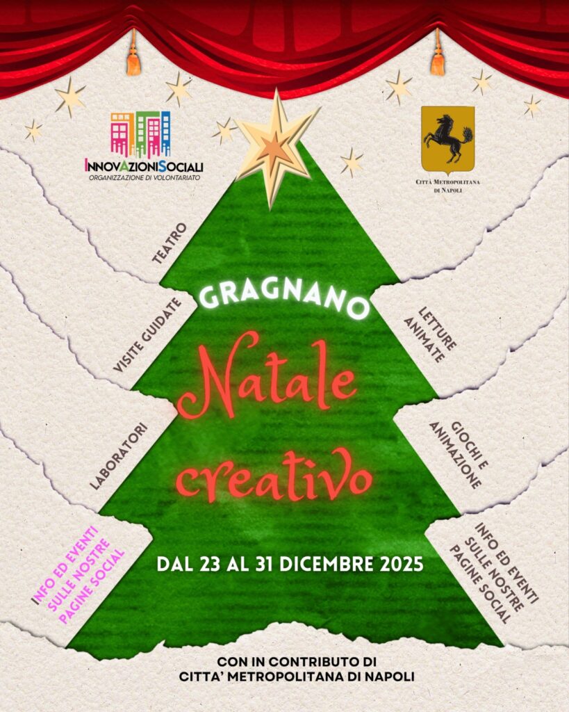 Gragnano si veste di creatività e partecipazione con “Natale Creativo: Arte, Tradizioni e Comunità”, un ricco programma di eventi pensato per coinvolgere bambini, ragazzi, famiglie e l’intera cittadinanza in un’esperienza condivisa di cultura, arte e socialità. Un’iniziativa che nasce per animare il periodo natalizio e trasformarlo in un’occasione di incontro, crescita e appartenenza, grazie al contributo dei volontari e alla collaborazione con l’Istituto Comprensivo Statale Roncalli–Lizzadri.