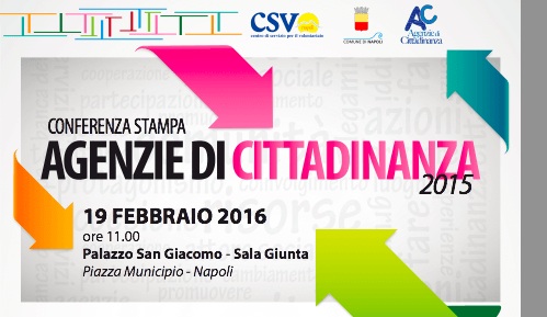 conferenza-stampaNAPOLI – Il 19 febbraio alle 11 in Sala Giunta a Palazzo San Giacomo si terrà la Conferenza Stampa di avvio delle “Agenzie di Cittadinanza 2015”, nate dalla collaborazione tra Comune di Napoli e dal Centro Servizi per il Volontariato di Napoli e Provincia.  Interverranno Roberta Gaeta, assessore al welfare del Comune di Napoli e Nicola Caprio, presidente del Centro Servizi per il Volontariato di Napoli e provincia (CSV Napoli).  Le Agenzie saranno realizzate nelle dieci municipalità cittadine da reti costituite da Associazioni di Volontariato e realtà del terzo settore.