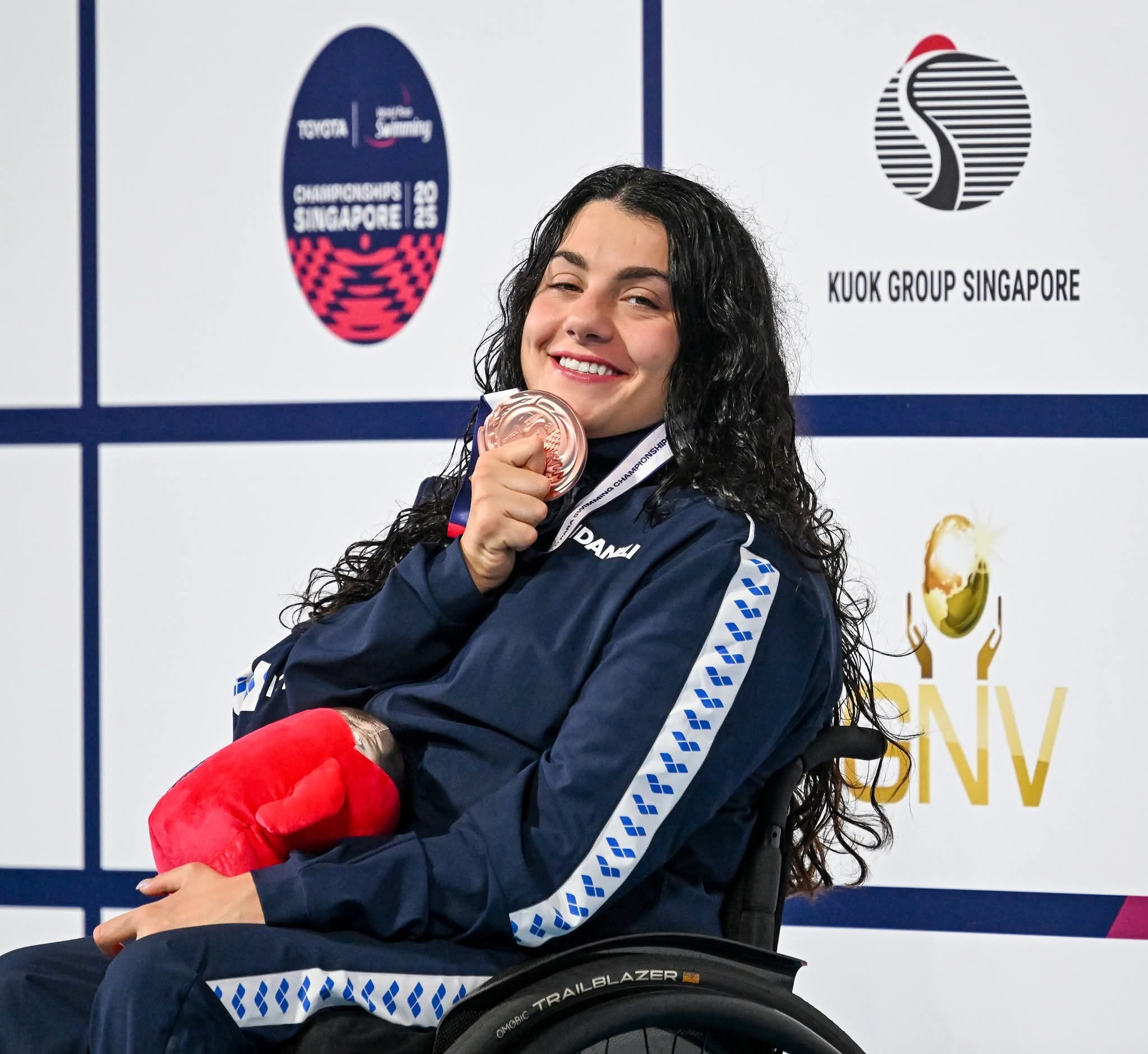 E allora Singapore diventa una cartolina speciale: il podio, il sorriso, il bronzo stretto tra le mani. Ma dietro c’è molto di più. C’è la bambina che non si è arresa. C’è l’atleta che non smette di sognare. C’è la donna che parla di barriere da abbattere, non solo in piscina, ma ovunque.