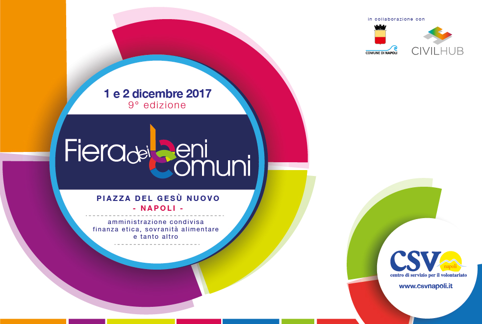 NAPOLI- Amministrazione condivisa, finanza etica, sovranità alimentare, riforma del Terzo Settore. Sono questi alcuni dei temi al centro della nona edizione della Fiera dei Beni Comuni che si terrà nei giorni 1 e 2 dicembre prossimi in Piazza del Gesù Nuovo a Napoli. Convegni, workshop, seminari e laboratori punteranno i riflettori sui Beni Comuni e sulla fattibilità di una loro gestione condivisa rappresentando occasioni privilegiate di confronto tra esponenti istituzionali, rappresentanti del mondo non profit e cittadini.