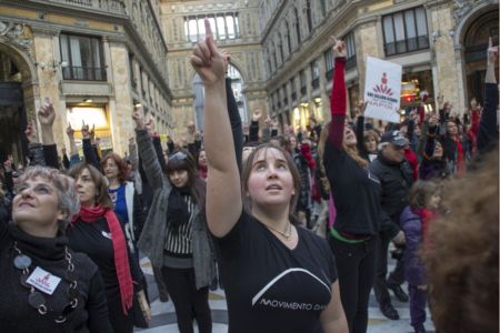 NAPOLI. A Sanremo ci ha pensato Luciana Littizzetto, a Napoli quasi mille persone hanno ballato insieme sulle note di “Break the chain”, la canzone di Debbie Allen, a piazza del Plebiscito prima e sotto la Galleria Umberto subito dopo. È il flash mob “one billion rising”, contro la violenza sulle donne, tenutosi nel giorno di San Valentino in 70 piazze italiane e in altri 180 Paesi, che ha coinvolto donne di ogni età, ma anche uomini e bambini. L’iniziativa di Napoli è stata dedicata a Giuseppina di Fraia, la donna deceduta all’ospedale Cardarelli di Napoli in seguito alle ferite inflittele dal marito lunedì scorso.