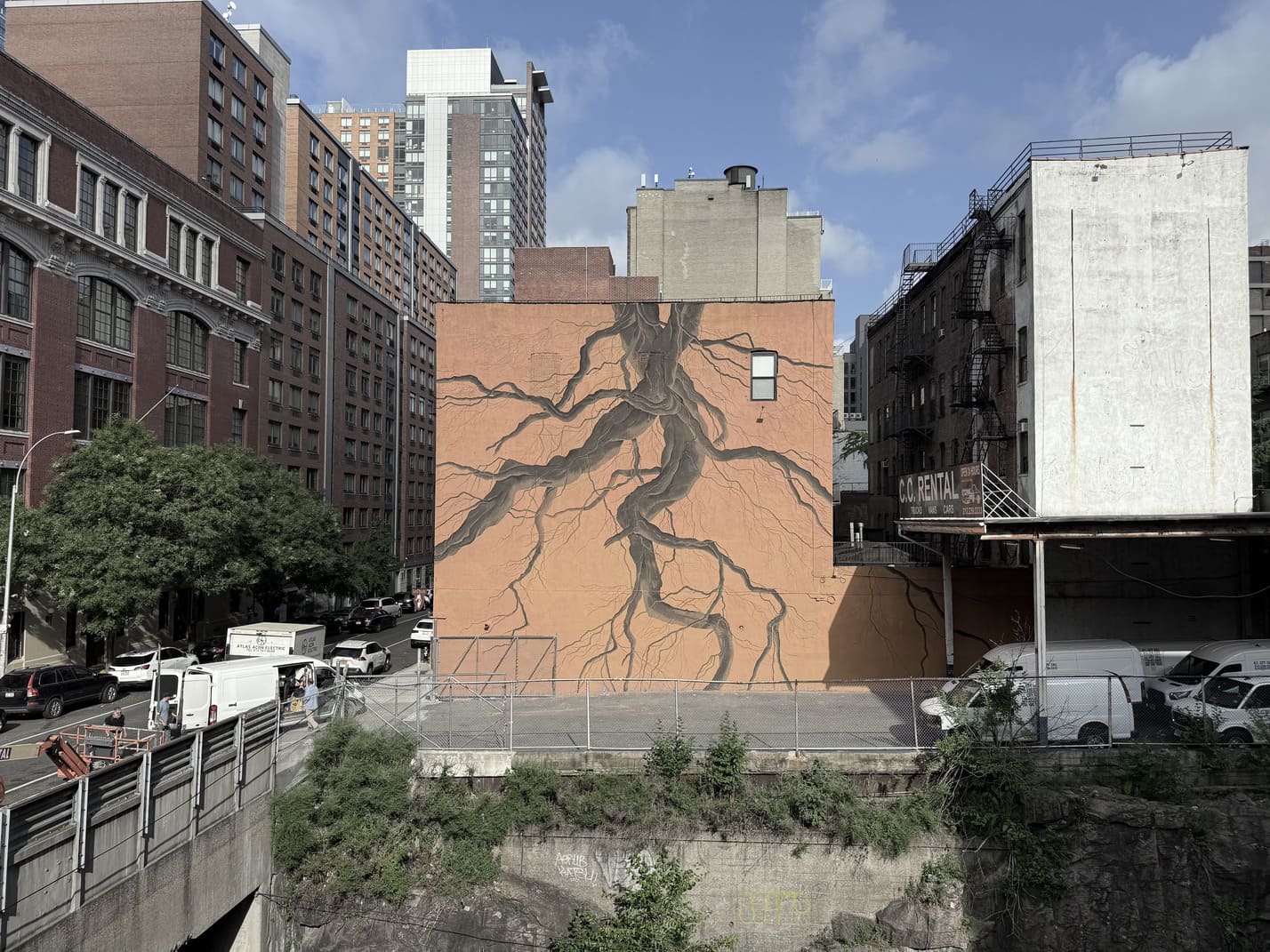 Sempre in collaborazione con Airlite, Yourban 2030 torna così a New York per proseguire il racconto iniziato a maggio 2025 con Botanic Pulse di Fabio Petani e lo fa con un altro artista italiano, Tommaso Spazzini Villa, che per l’occasione firma l’ecomurales Strength, letteralmente “forza”, come quella delle radici.