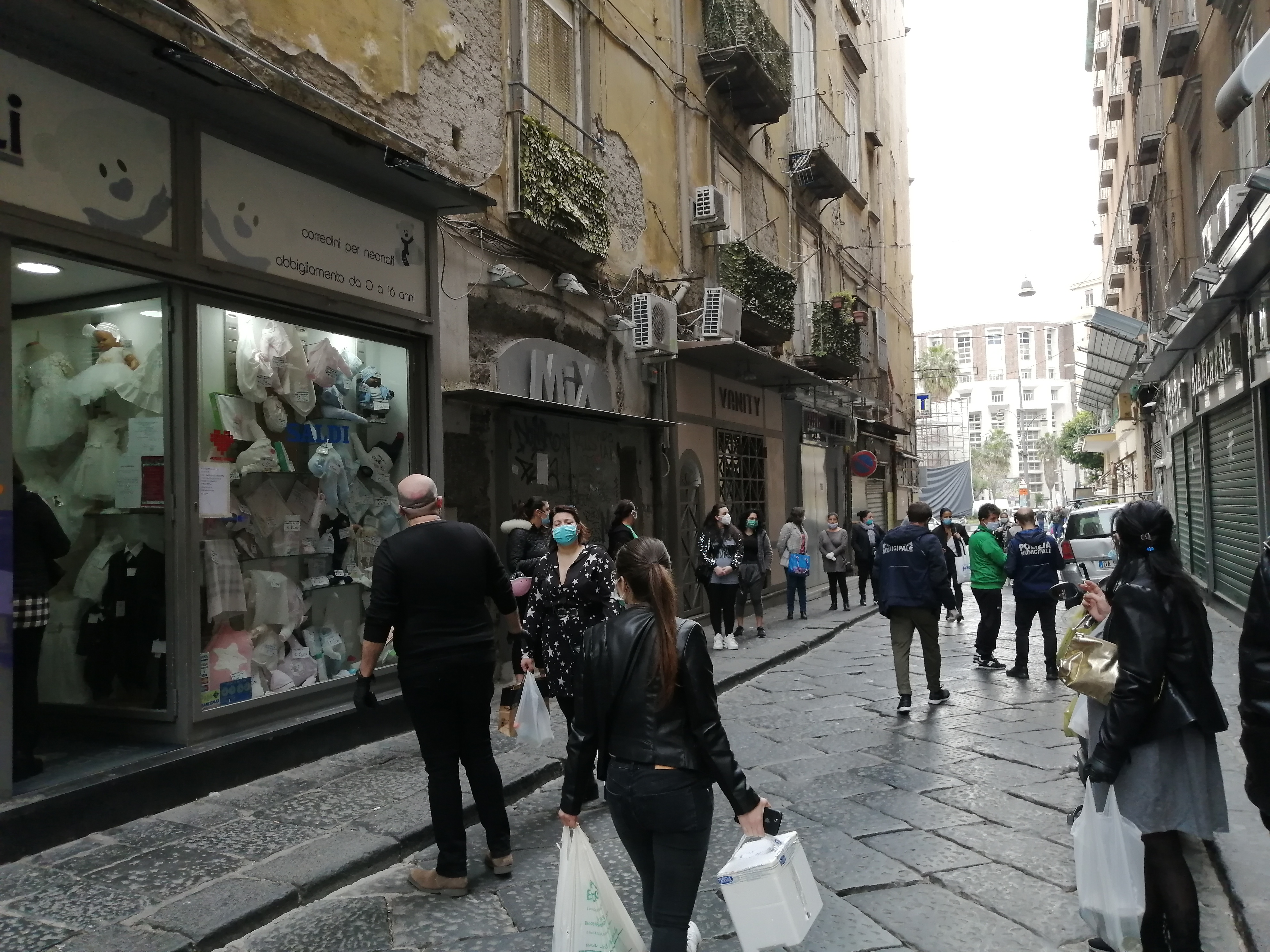 In un mese e mezzo un bambino di pochi anni, o anche un neonato, può crescere a tal punto da costringere i genitori a tenere nell’armadio tutine, pigiamini e altri indumenti di solito utilizzati. Un bel grattacapo per mamme, papà quando si tratta di vestire i propri figli e nipoti che la riapertura, seppur per sole due volte a settimana, il martedì e il venerdì, dalle 8 alle 14 (il martedì e il giovedì in concomitanza del 1 maggio), dei negozi di abbigliamento stando all’ordinanza del governatore Vincenzo De Luca, ha senz’altro contribuito a risolvere viste le lunghe file già nella giornata di ieri. È la prima volta dai primi di marzo, periodo di inizio del lockdown.