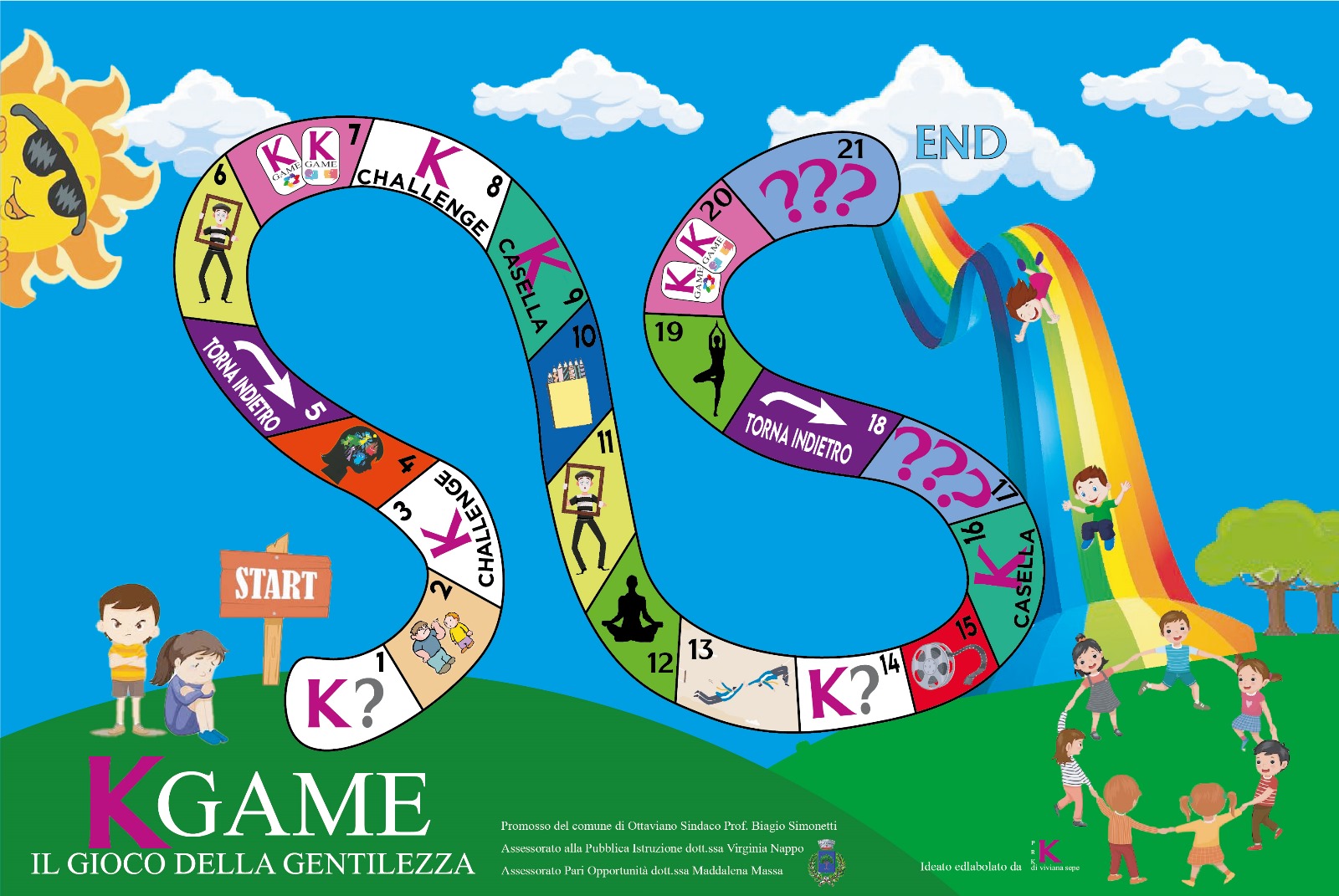 Si chiama “K Game. Il gioco della gentilezza” l’iniziativa che il Comune di Ottaviano, nello specifico l’assessorato alle politiche per l’infanzia retto da Virginia Nappo e l’assessorato alle pari opportunità retto da Maddalena Massa, ha promosso nell’ambito del progetto nazionale “Costruiamo Gentilezza 2024”, che vede la Città Metropolitana di Napoli quale Capitale nazionale della Gentilezza 2024.