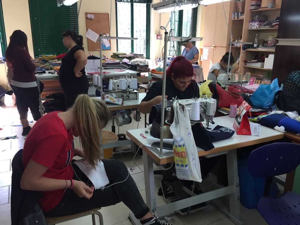LA PERSONA AL CENTRO – Il luogo in cui ha preso forma l’IeFP è il Centro Alberto Hurtado di Scampia, sorto in una struttura messa a disposizione dal Comune di Napoli e gestita da padre Fabrizio Valletti, gesuita che opera in questo territorio di frontiera da più di 15 anni. Una scelta non casuale: proprio nel quartiere della periferia nord di Napoli, infatti, qualche anno fa EIDT ha attivato un corso di formazione per sarte da cui è nata la Cooperativa sociale “Giovani di Scampia – La Roccia”, che oggi dà occupazione a 15 donne della zona. La Cooperativa adesso rappresenta una delle imprese madrine del progetto: in particolare, Giovanna Vetrano, una delle sarte, è passata dall’altra parte del banco, come insegnante di cucito. «Tutti i docenti che abbiamo coinvolto nelle attività sono laureati e professionisti di Scampia: ciò ha permesso alle ragazze di confrontarsi con persone provenienti dalla loro stessa realtà e ha facilitato il trasferimento di una serie di competenze non solo di carattere tecnico, ma anche di approccio alla vita – spiega a Comunicare il Sociale l’amministratore di EIDT, Paolo Lanzilli –. Il nostro non è soltanto un intervento per favorire l’istruzione e far conseguire un diploma: al centro c’è il singolo nella sua interezza e complessità». A settembre, per le 16 allieve che stanno continuando il percorso, inizierà l’alternanza scuola-lavoro presso grandi marchi del mondo della sartoria, nazionale ed internazionale, come Kiton Spa di Ciro Paone, Kuvera Spa (nome commerciale Carpisa e Yamamay) e Assia Spose; quattro tra loro saranno impiegate al Teatro San Carlo, per confezionare abiti teatrali, mentre un gruppo, nella Cooperativa “La Roccia”, avrà il compito di realizzare una linea di borse e accessori contro la violenza sulle donne. «Facciamo rete con gli attori del territorio – aggiunge la coordinatrice didattica, Filomena Oricchio – partendo, da un lato, dalle peculiarità delle aziende e dall’altro dalle caratteristiche vincenti delle nostre ragazze».