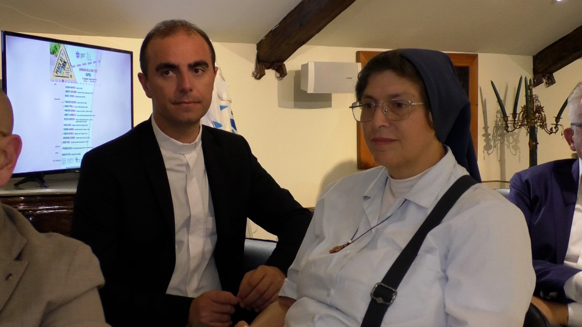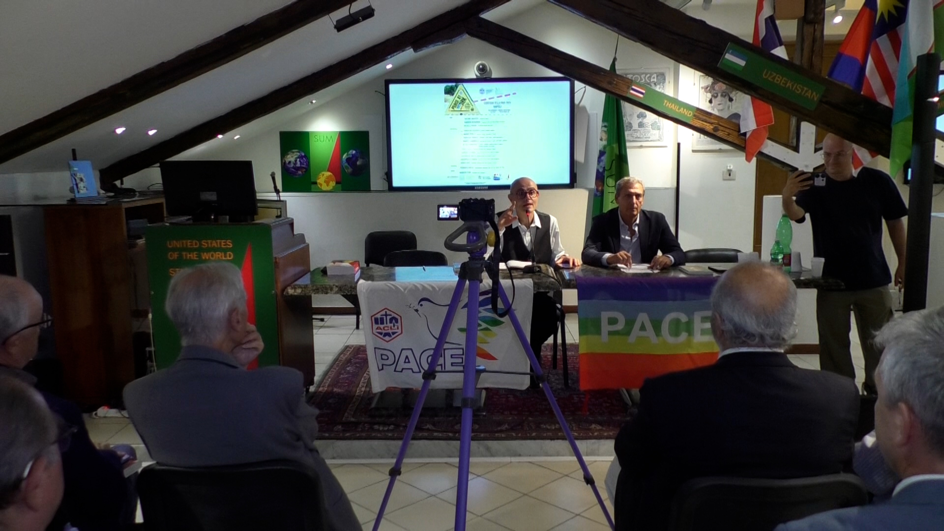 Gli interventi- Tante le riflessioni all’iniziativa di venerdì che ha accolto la carovana, partita il 2 settembre da Palermo e che si concluderà il prossimo 15 dicembre all’Assemblea straordinaria del Parlamento europeo di Strasburgo. Pierangelo Milesi, vicepresidente nazionale delle Acli con delega alla pace ha ricordato come il claime di questa iniziativa sia «Peace at work, che una tappa a Napoli nel giorno di San Gennaro. Ci fa piacere essere qui al museo della pace. La pace in costruzione, è una questione di artigianato Ognuno di noi è chiamato a fare la propria parte ogni giorno e nella propria dimensione spirituale, è inaccettabile quanto sta accadendo» anzitutto in Palestina ma non solo. Per Michele Capasso, presidente del Museo della Pace, l’incontro con la carovana della pace ha rappresentato «un momento importante, che non poteva non essere ospitato qui che da quarant’anni è il simbolo della pace. Non bisogna trovare la via della pace, la pace è la via e la strada – aggiunge Capasso – In quarant’anni abbiamo spesso messo insieme le varie parti per costruire un dialogo vero e concreto. In questo momento gli Stati Uniti del mondo (rappresentati all’interno del museo con sede in via Agostino De Pretis ndr.) sono costituiti da 181 Paesi e da 16.000 organismi della società civili stanno dando voce della testimonianza come atto di pace. Stiamo realizzando simboli in tutti il mondo dedicati alle madri dei bambini morti in guerra, morti per fame, alle madri ad esempio delle vittime di mafia e della criminalità organizzata e che con la propria testimonianza può tutelare i valori fondamentali dell’umanità». Secondo il presidente delle Acli Metropolitane di Napoli, Umberto Cristadoro, «l’arrivo a Napoli della carovana è una tappa importante della marcia della pace di Assisi, Napoli è una città simbolica, ci sono tante etnie, genialità e contraddizioni ma dove la pace è radicata in modo forte». «Don Mimmo – le parole della direttrice della Caritas di Napoli suor Marisa Pitrella – ci ha richiamato a essere costruttori di pace, essere donne e uomini che non possono più stare fermi a guardare quello che sta accadendo ma che si sporcano le mani. La pace inizia già dalle nostre famiglie, nel nostro Paese e nelle nostre città. Dobbiamo costruire relazioni belle perché la pace non è solo giustizia ma è molto di più: è fraternità. Dobbiamo tutti insieme lavorare perché ognuno di noi possa mettersi in campo con il linguaggio, con le azioni, per costruire per essere Artigiani di Pace per costruire un mondo di fraternità per costruire la pace». Non così dissimile la riflessione di don segretario dell’arcivescovo di Napoli. Don Mimmo Battaglia «ha fatto una denuncia fortissima rispetto alle ipocrisie sulla pace, forte la testimonianza di padre Romanelli su Gaza. Una pace senza giustizia, non ci può essere e riguarda anche il lavoro come libertà e così si parametra anche il livello di giustizia e quindi di pace».