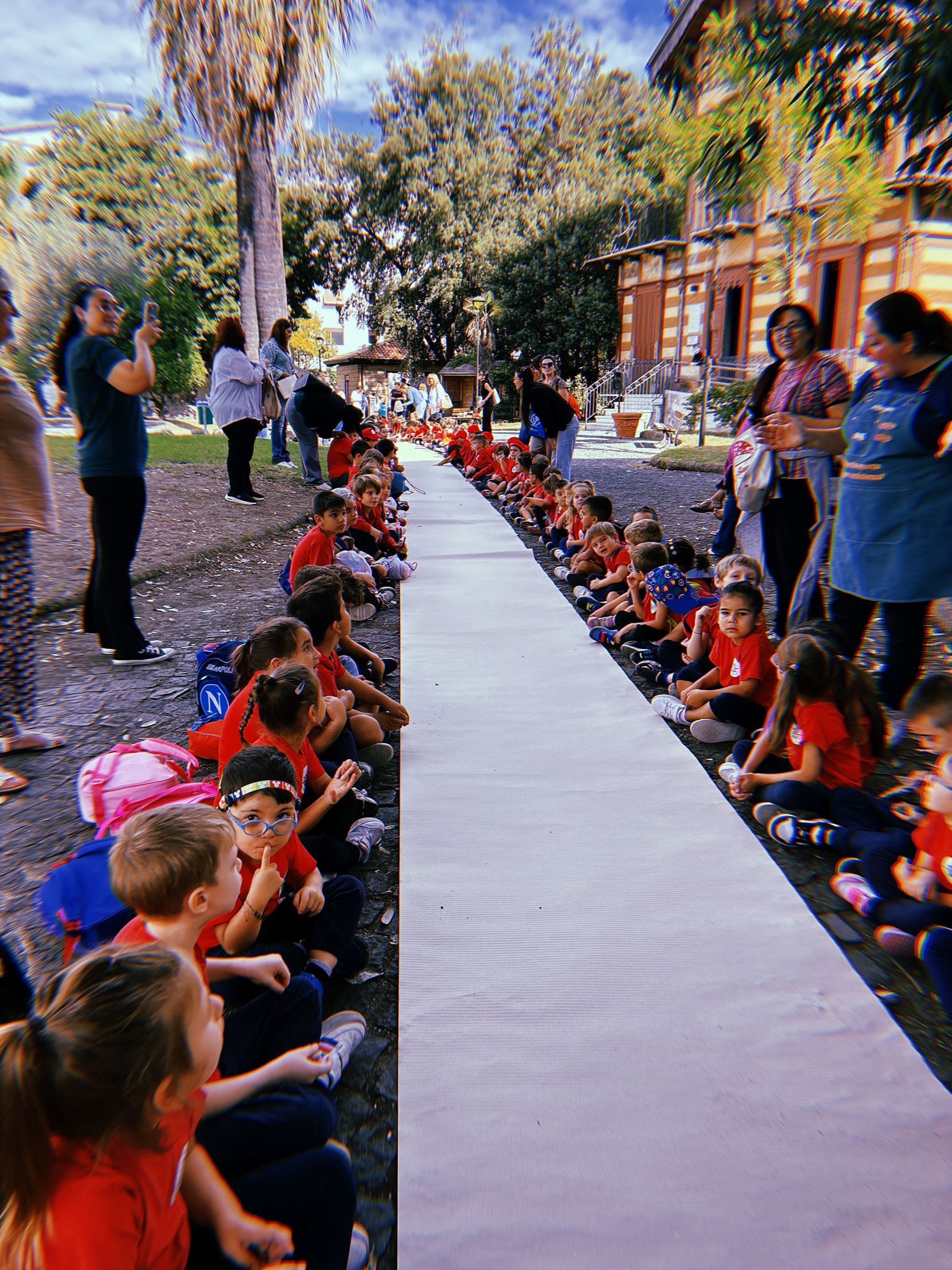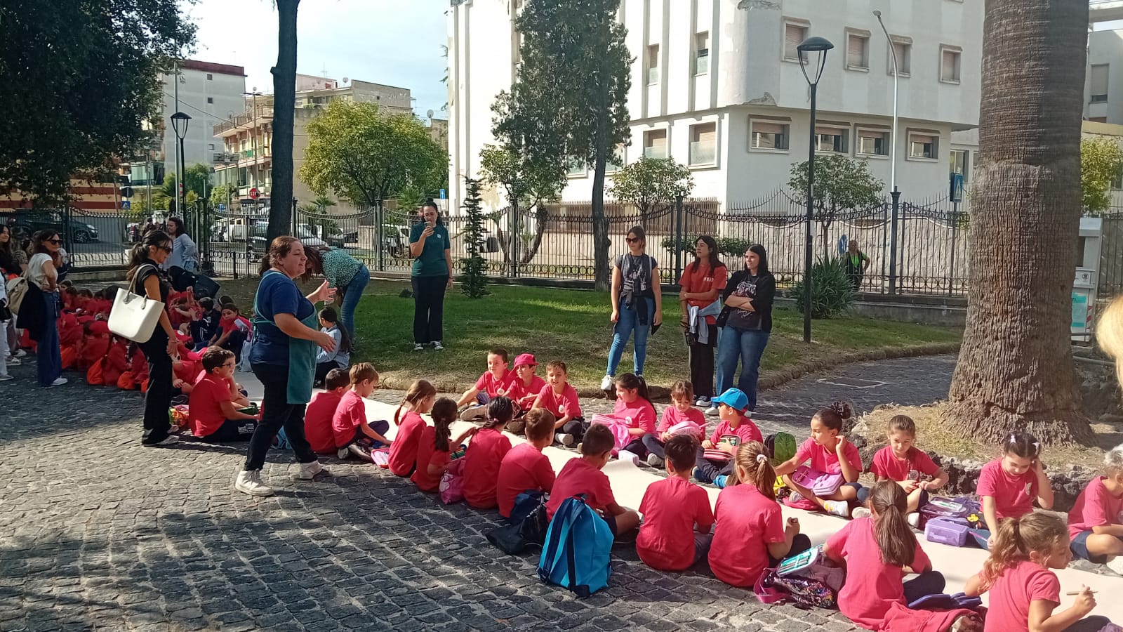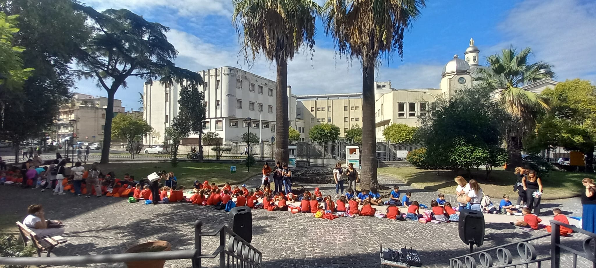 Oggi (l’iniziativa si ripeterà il 6 ottobre) Villa Falanga è stata invasa dai sorrisi dei bambini: i cinquenni delle scuole dell’infanzia dell’Istituto Comprensivo Stanziale – plessi Noschese e Cappiello – insieme agli alunni delle classi seconde, terze e quarte della primaria dello stesso istituto e agli studenti della terza primaria dell’Istituto Mazzini. Tutti uniti da un obiettivo: esprimere solidarietà e vicinanza ai loro coetanei palestinesi.