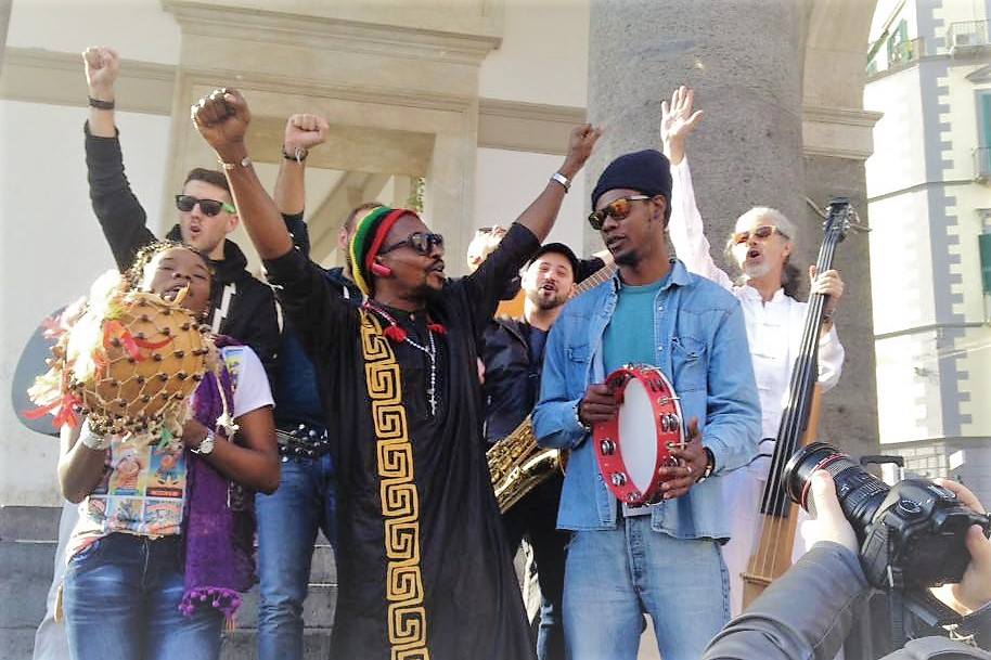NAFrythm è un ensemble afro-napoletano che ha messo in musica l’incontro tra diverse culture. Tutto ha avuto inizio nel 2013, quando la Rete co’ Mar, un collettivo di musicisti napoletani, ha dato vita ad un laboratorio musicale gratuito per immigrati provenienti da differenti sponde del Mediterraneo. Da quel momento, ha preso forma un autentico gruppo di lavoro con un repertorio di brani inediti incentrati sul tema della solidarietà internazionale. Tra gli animatori di questo progetto merita un posto d’onore il bassista Vittorio Nicoletti Altimari, già nelle fila della storica band 666, protagonista della stagione della Vesuwave partenopea.