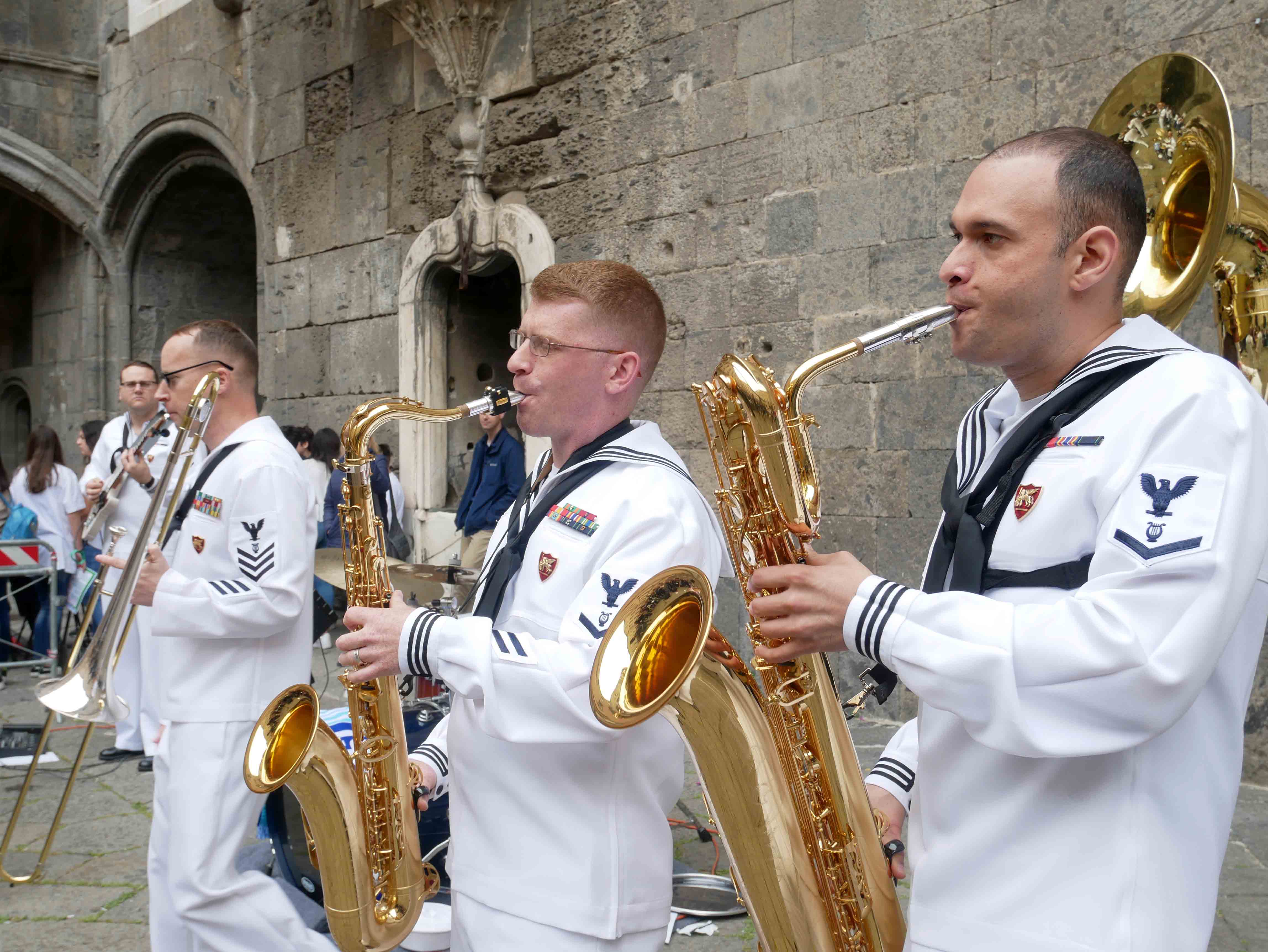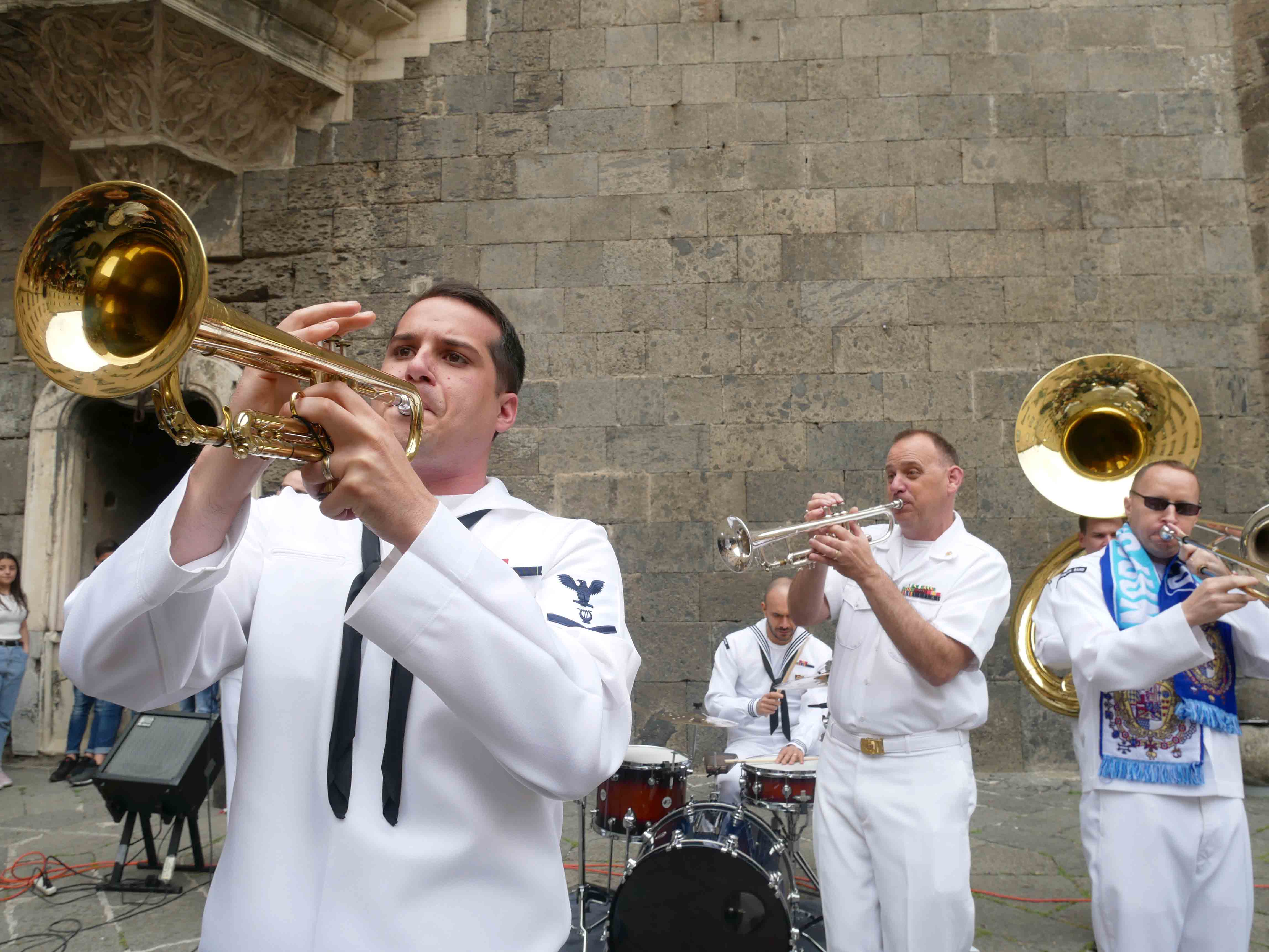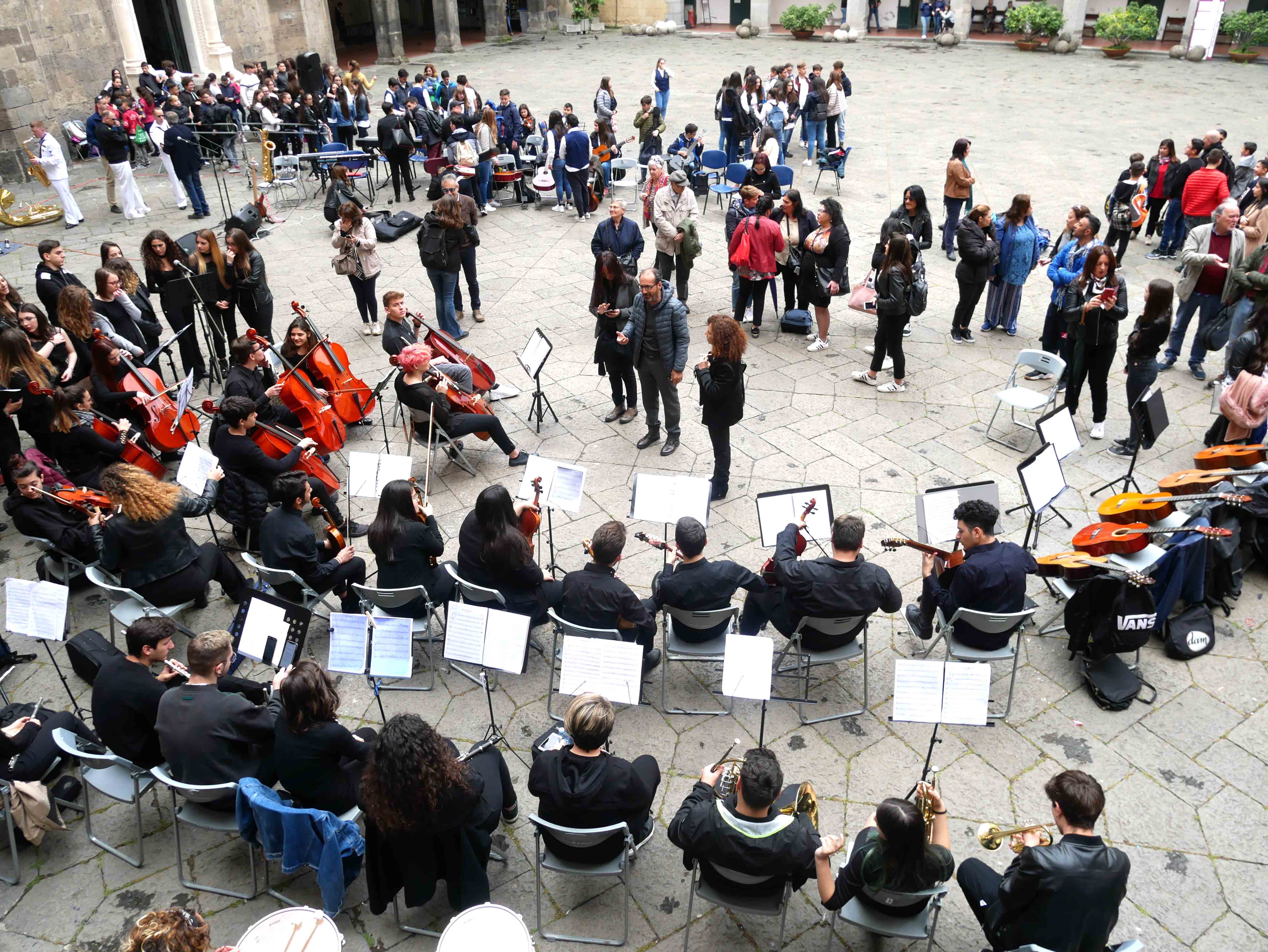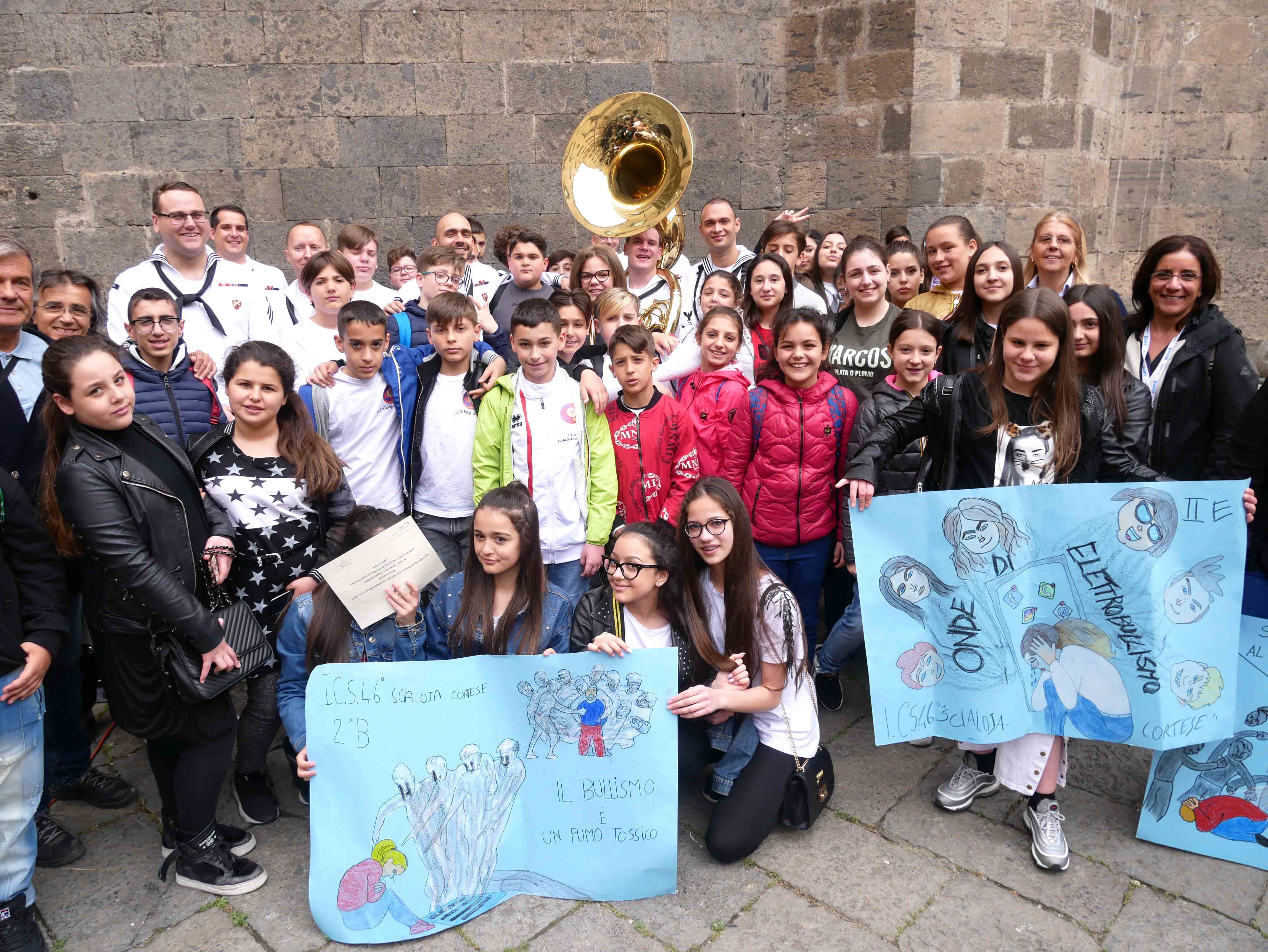 Si è svolto nel cortile del Maschio Angioino l’ottava edizione del “Festival internazionale delle arti per la sicurezza stradale e la legalità – Occhio alla vita”. Un’iniziativa promossa dall’ente del terzo settore “Etesia” che per tutto l’anno ha coinvolto una ventina di scuole, circa diecimila ragazzi, di ogni ordine e grado sul territorio di Napoli e provincia con tanti progetti teorici e pratici volti all’educazione civica. Il presidente di Etesia Antonio D’Ambrosio: “Durante l’anno tocchiamo temi importantissimi come la sicurezza stradale, il cyberbullismo, l’uso e abuso di sostanze stupefacenti, il corretto utilizzo di internet, e tutte quelle problematiche legate al disagio giovanile e alle devianze. Il tutto viene trattato attraverso l’arte per coinvolgere sia i ragazzi più piccoli che i grandi, con musica, balli, disegni, ma sono stati realizzati anche cortometraggi”. Al Maschio Angioino oggi erano presenti classi di quattro differenti scuole, Palizzi Boccioni, Scialoja Cortese, Di Capua, Dumas, che, accompagnate dalla banda musicale della Marina Militare degli Stati Uniti d’America, hanno presentato i loro progetti di fine anno. Le scuole partecipanti sono infatti italiane, francesi e americane. Alla fine delle esibizioni, gli stessi ragazzi hanno votato i progetti e sono stati premiati. Il cortile del Maschio Angioino si è animato quindi di tante musiche diverse, italiane, internazionali, napoletane, ed i ragazzi hanno suonato, cantato e ballato insieme ai militari della Marina. Da questa iniziativa partiranno corsi specifici di formazione con il coinvolgimenti di enti del terzo settore e anche dell’università Federico II di Napoli. “Ci siamo posti come obiettivo di allargare quest’iniziativa anche ad altre regioni italiane come il Molise e la Basilicata”, ha dichiarato il presidente di Etesia, D’Ambrosio.